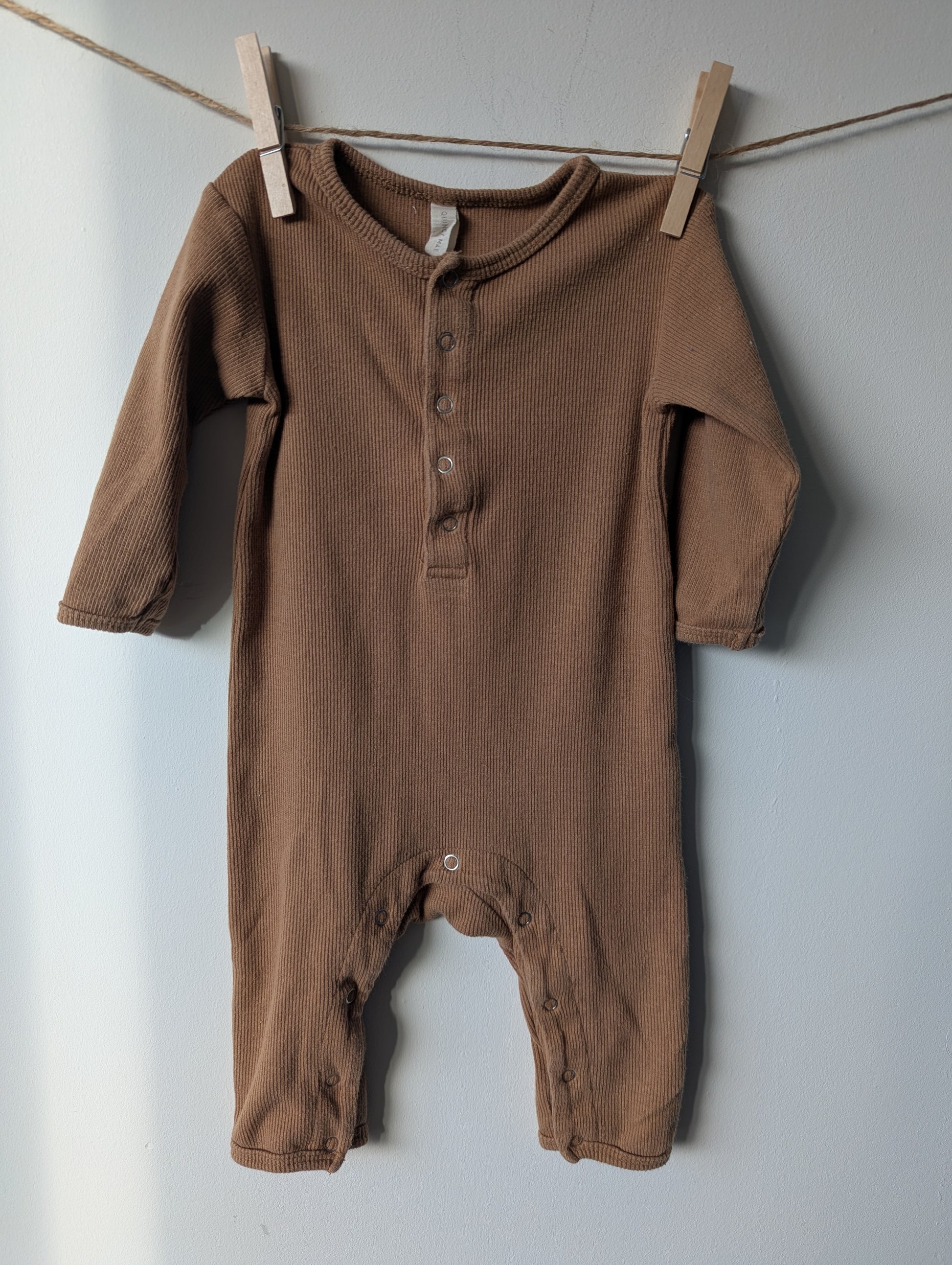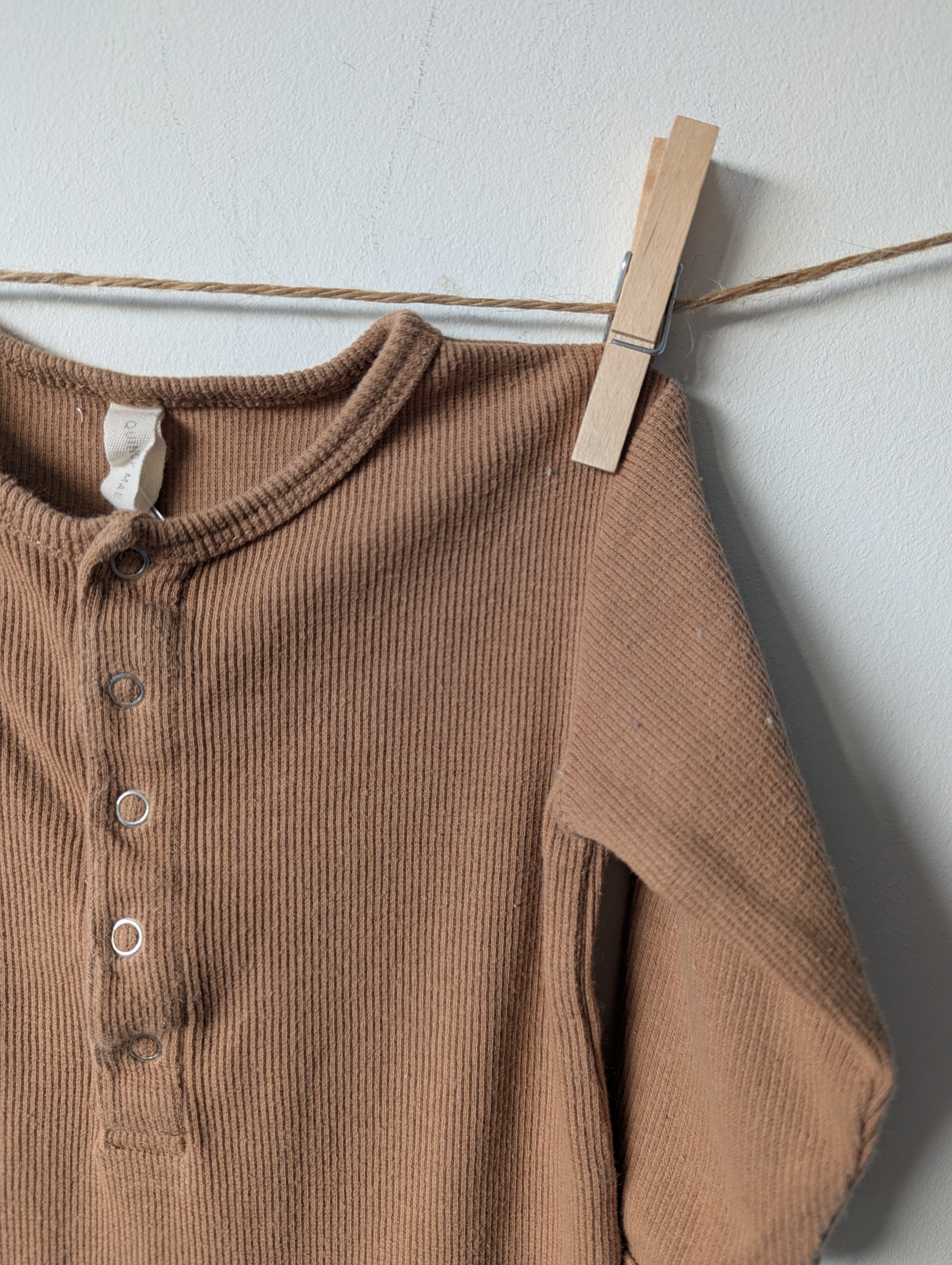 Lichtbruin zacht boxpakje met streepje in de stof.