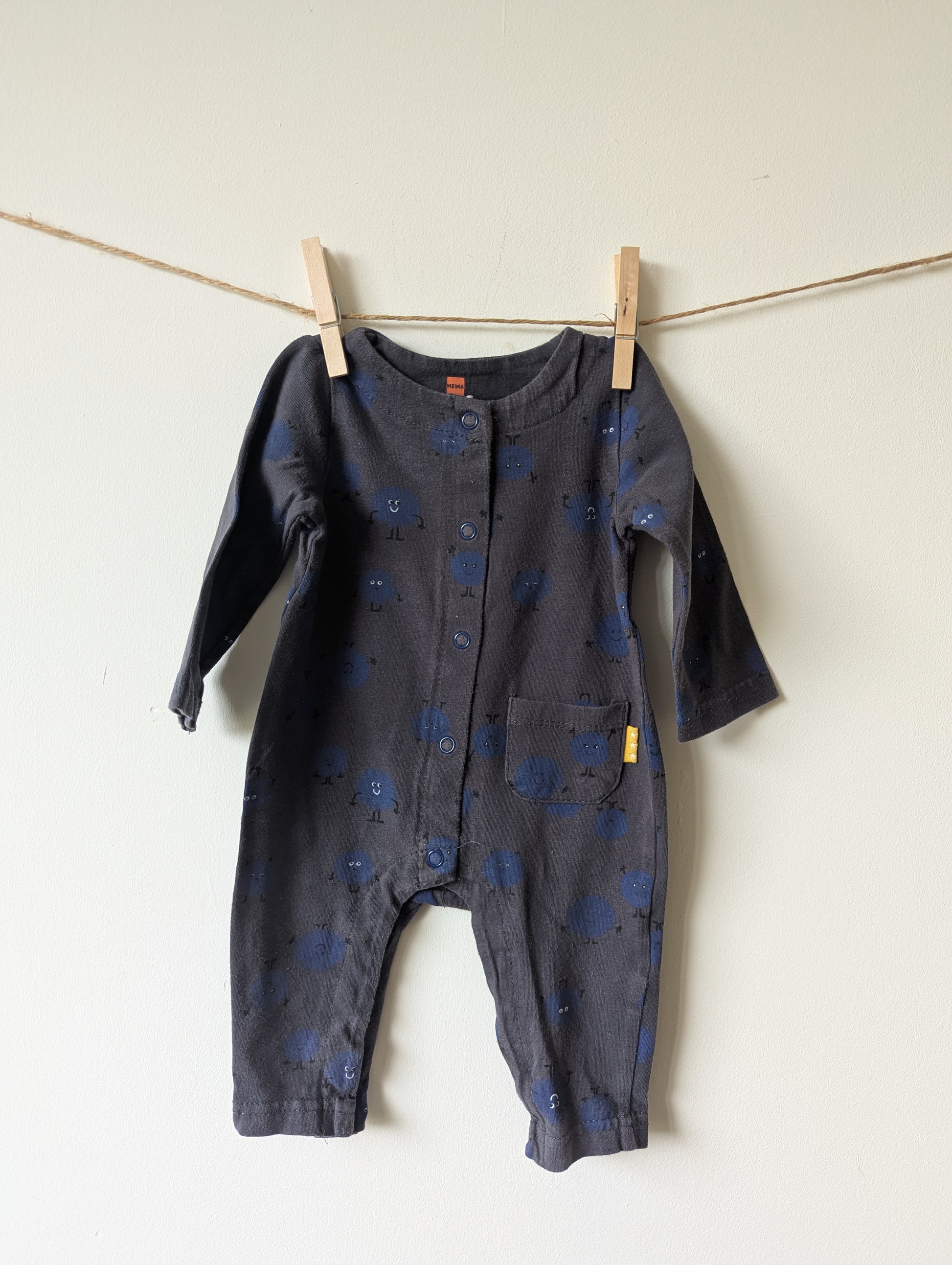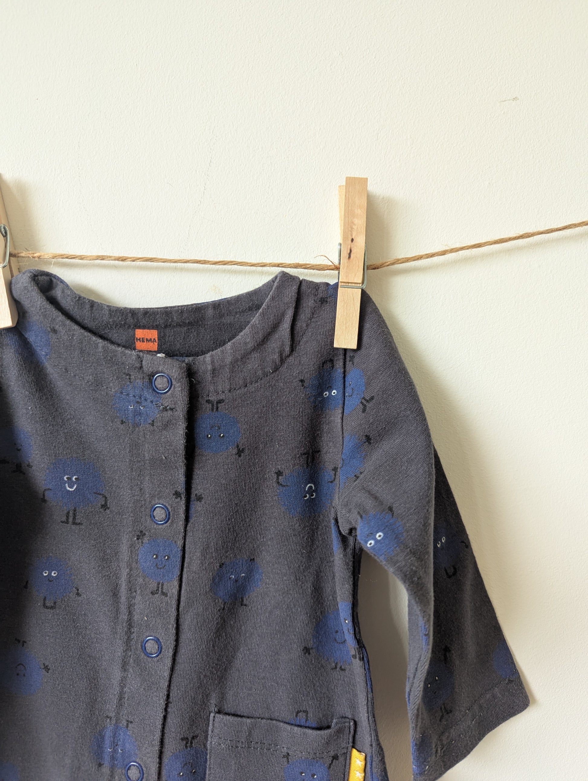 Antraciet boxpakje met blauwe furry bal wezentjes met armen en benen.