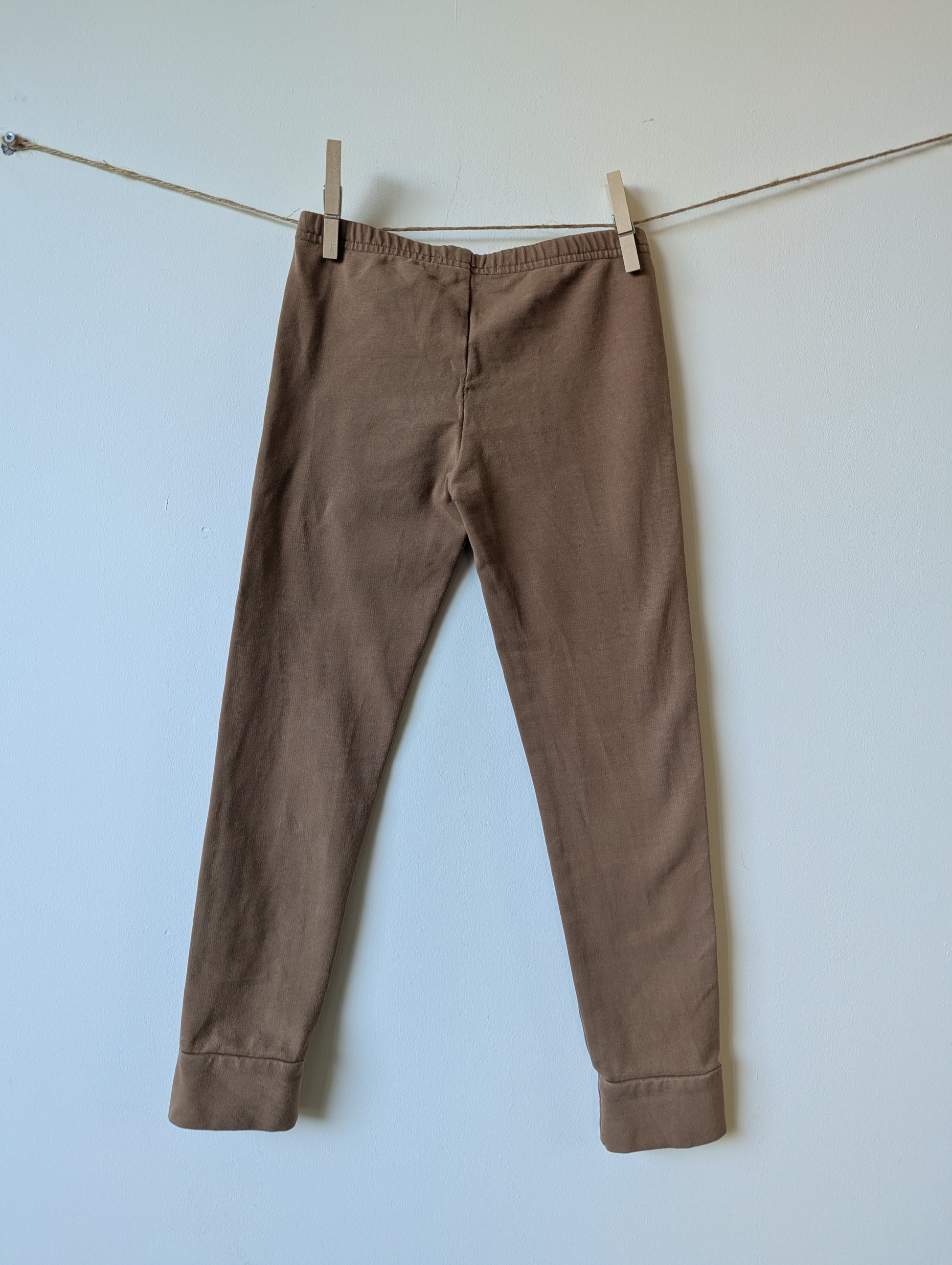 Lichtbruine broek van het merk mingo. Gedragen, de knieën zijn wat smoezelig. Dit broekje is voor een smal kind, want de pijpen zijn strak. Kleine prijs want je ziet dat het geen nieuw broekje meer is.