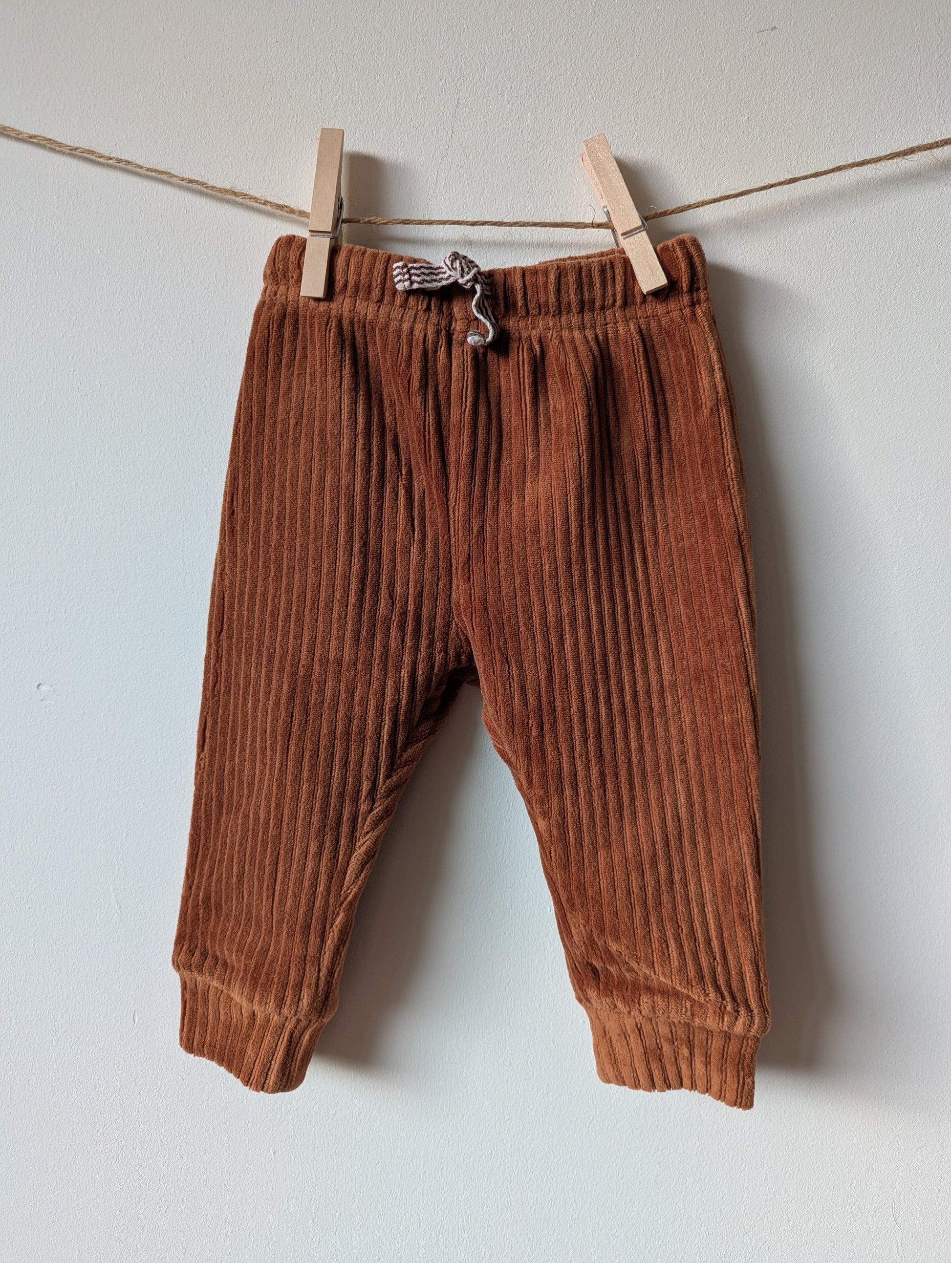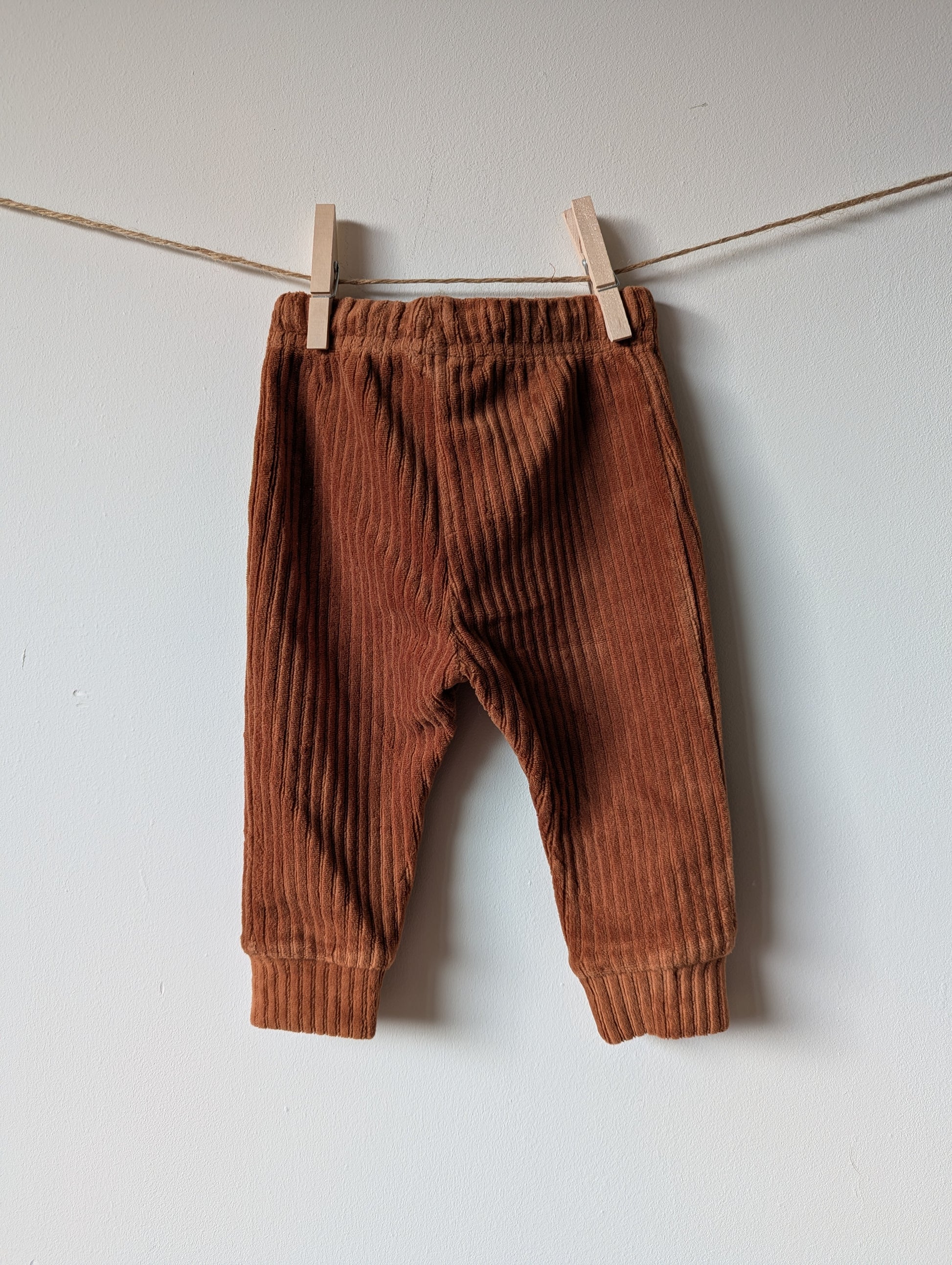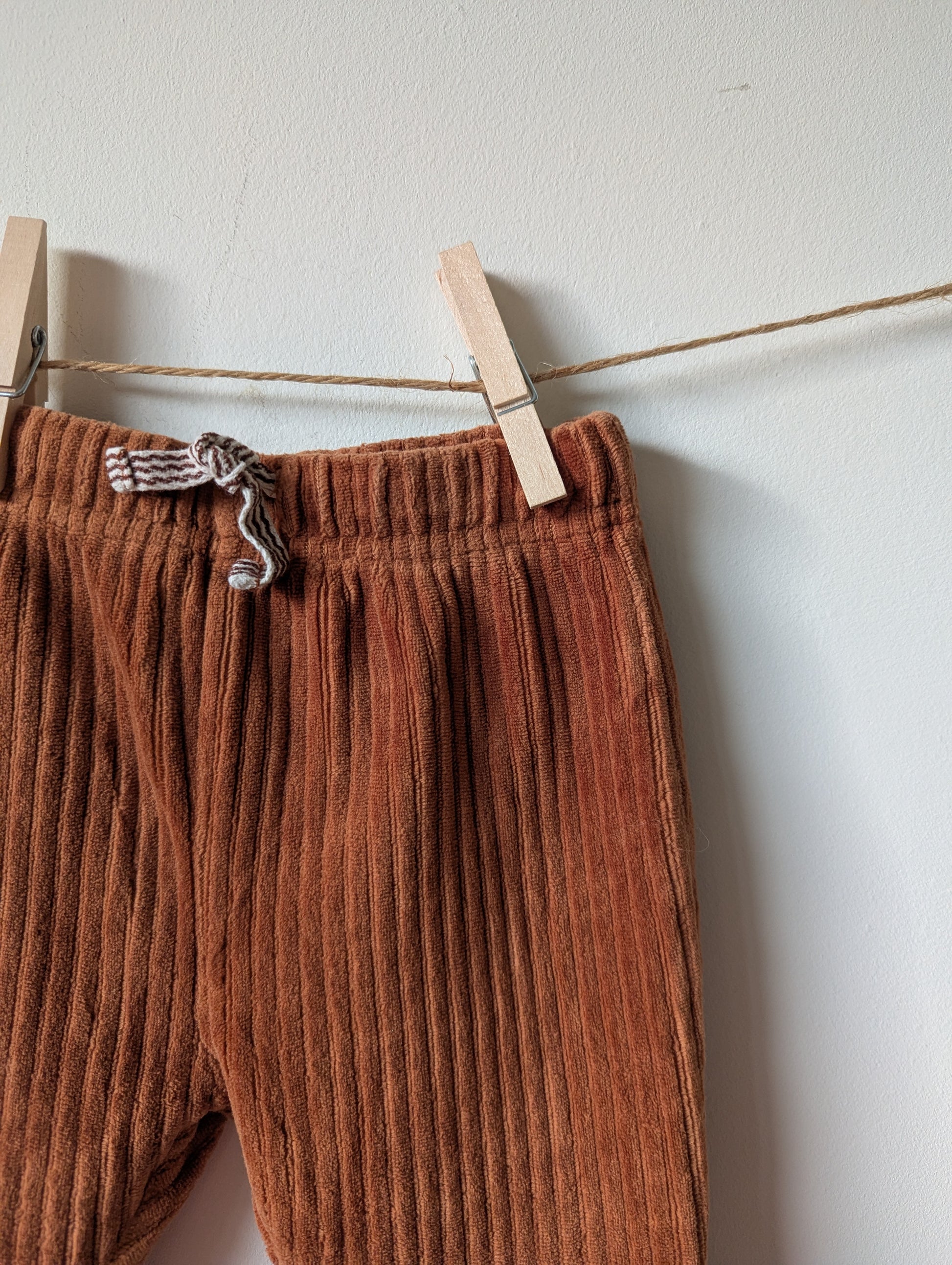 Bruin broekje, zacht en streepjes in de stof.