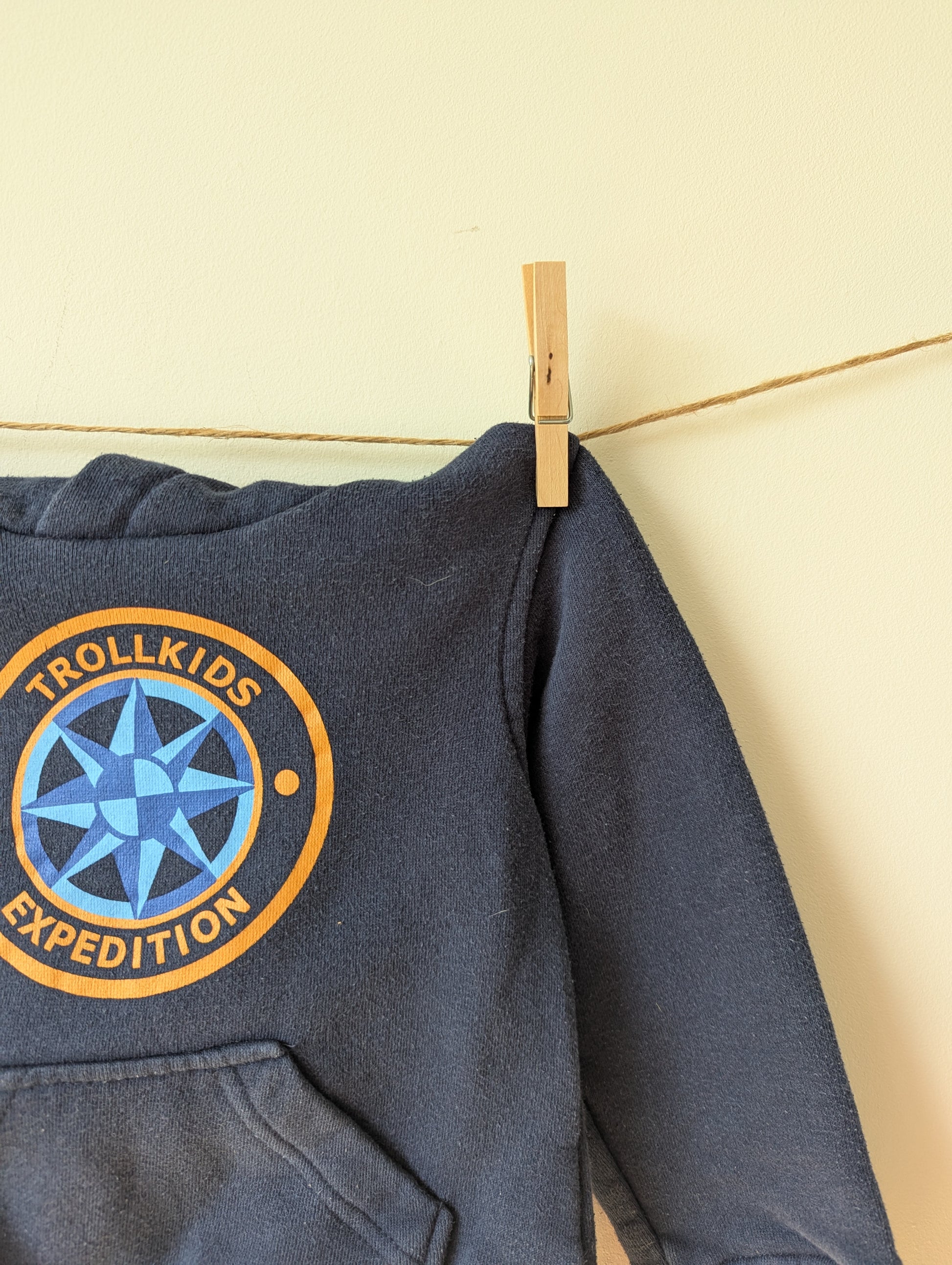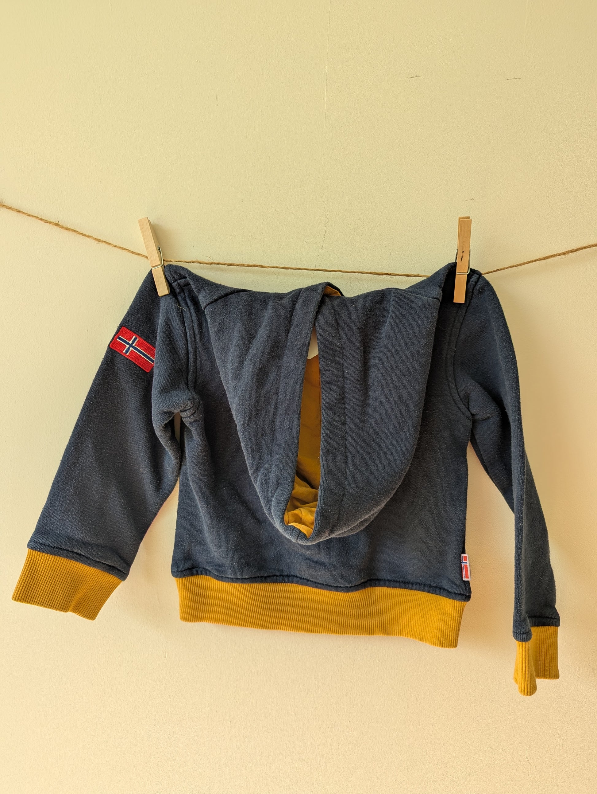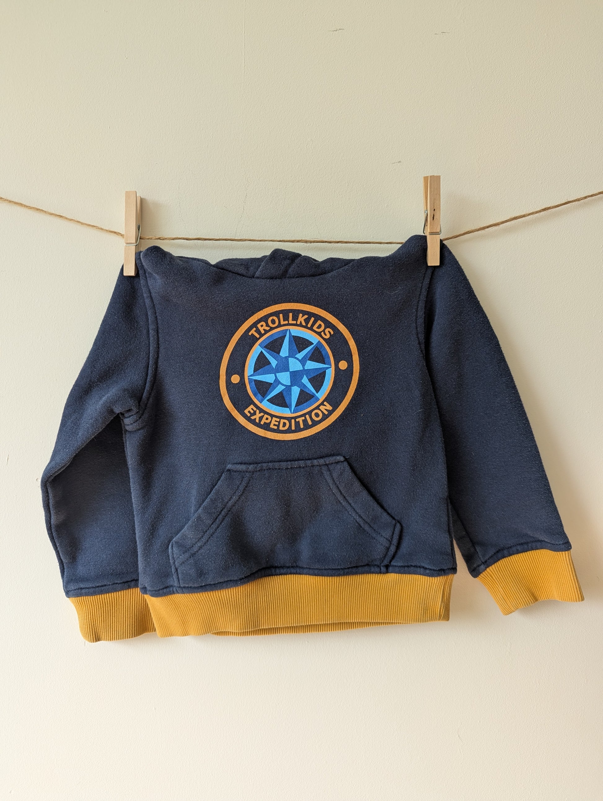 Marineblauwe trui van Trollkids met mosterdgeel