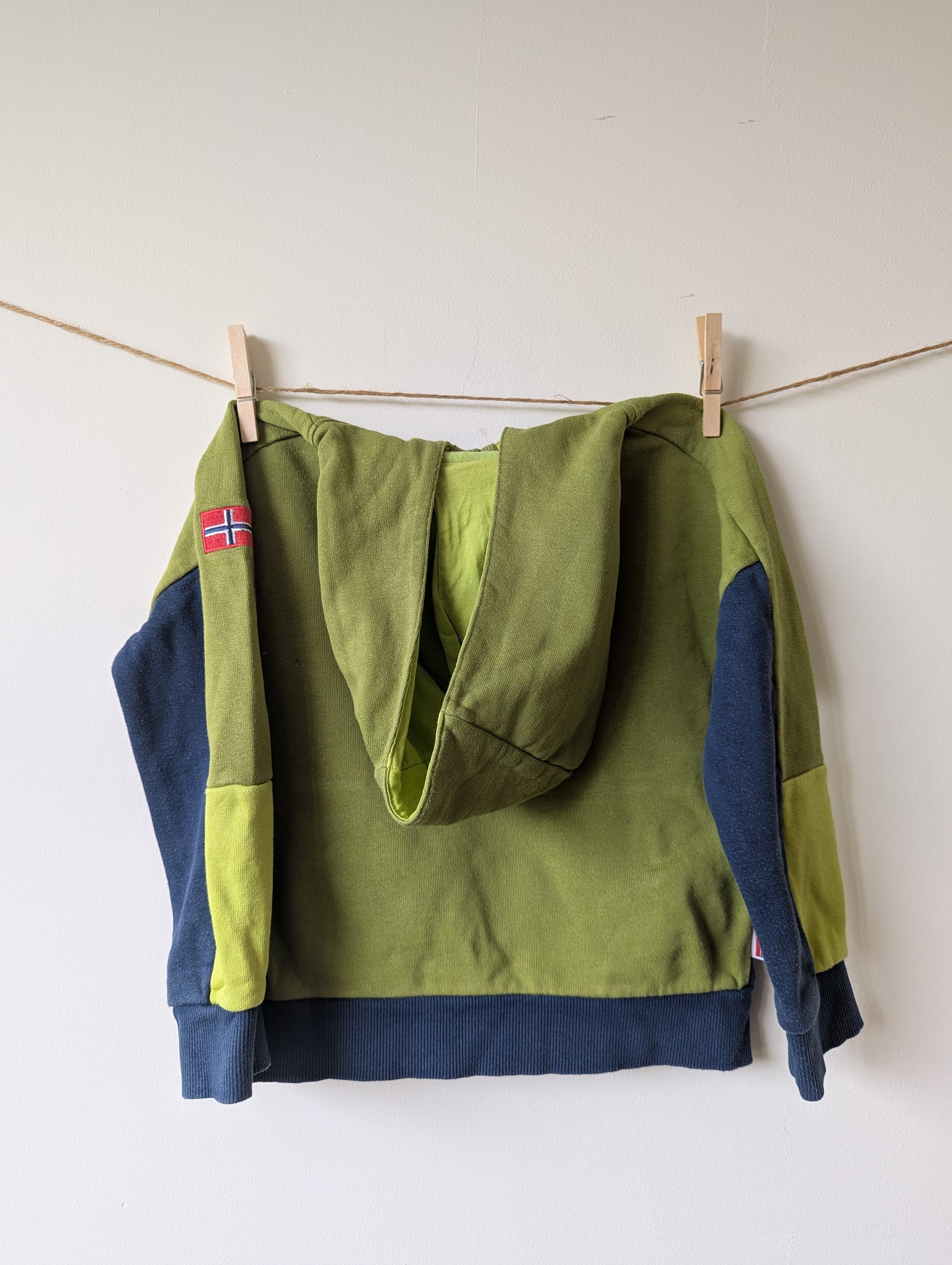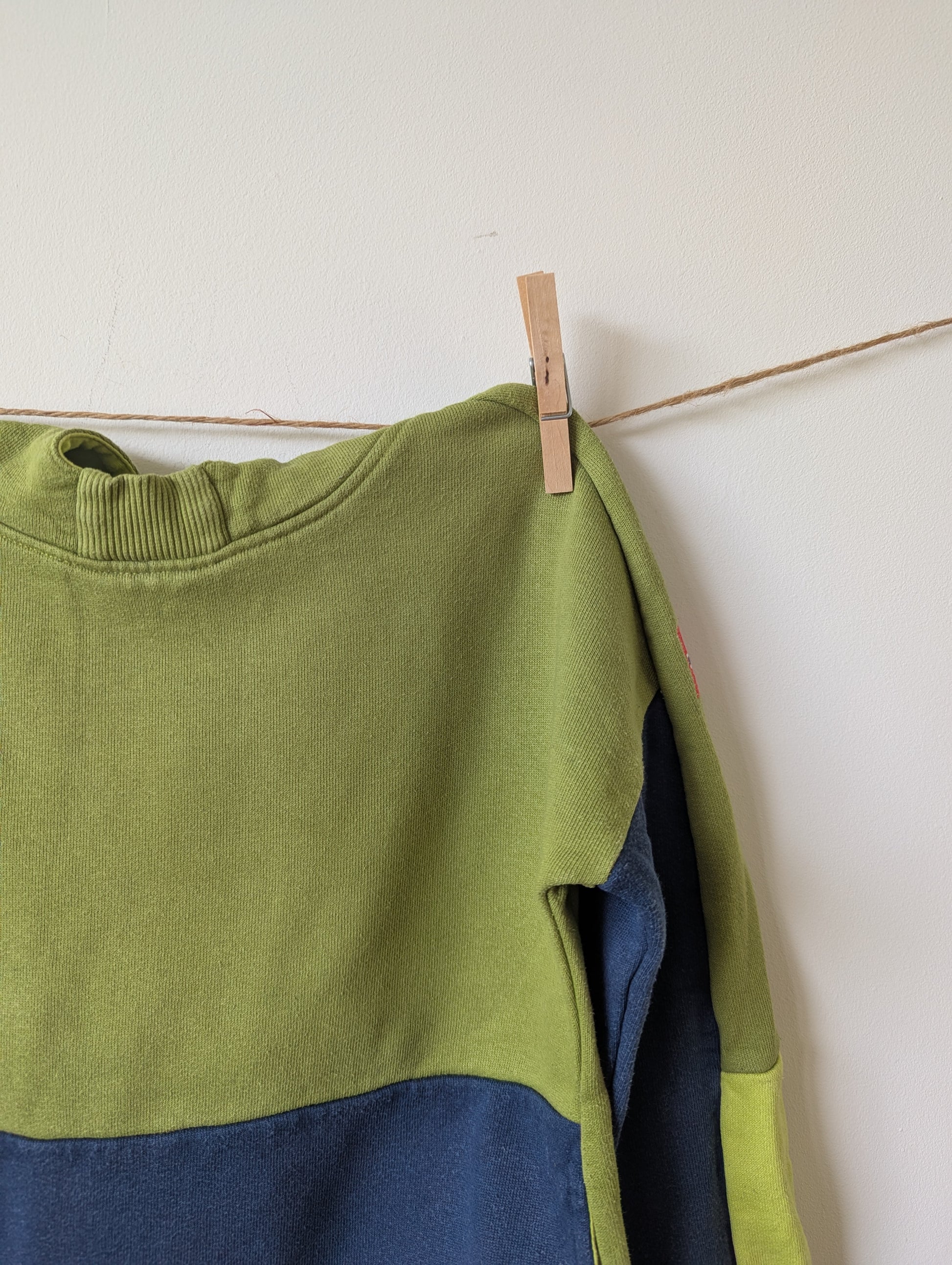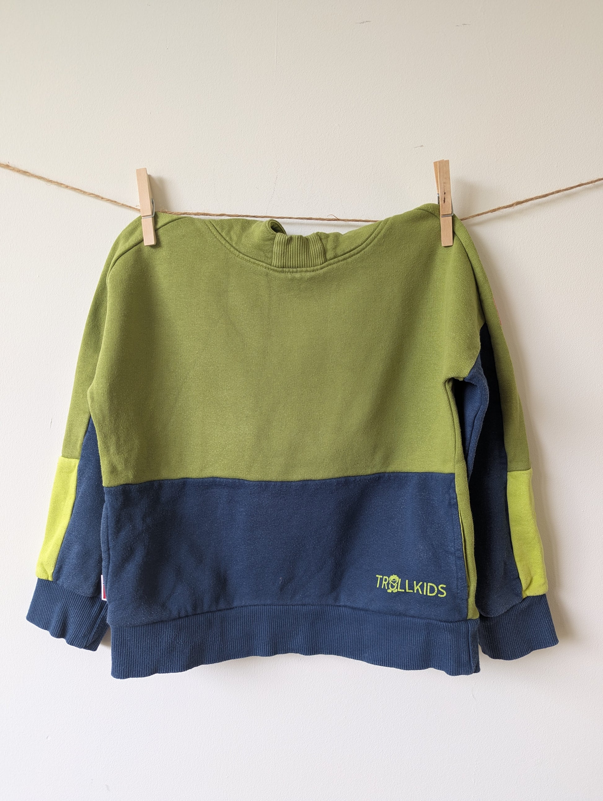 Trui met groen, lichtgroen en marineblauw. Lekkere trui!