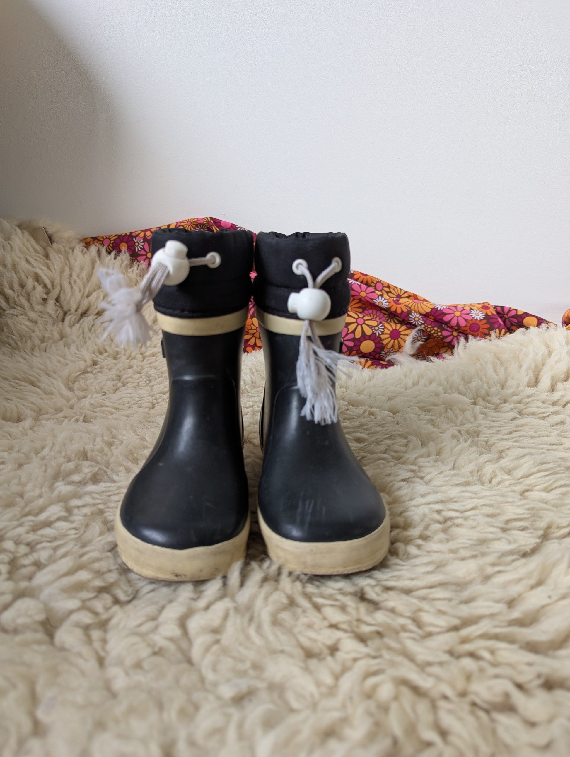 Marineblauwe laarzen van Bergstein. Witte draadjes worden wat losser verder in goede staat. Kijk maar naar de foto's