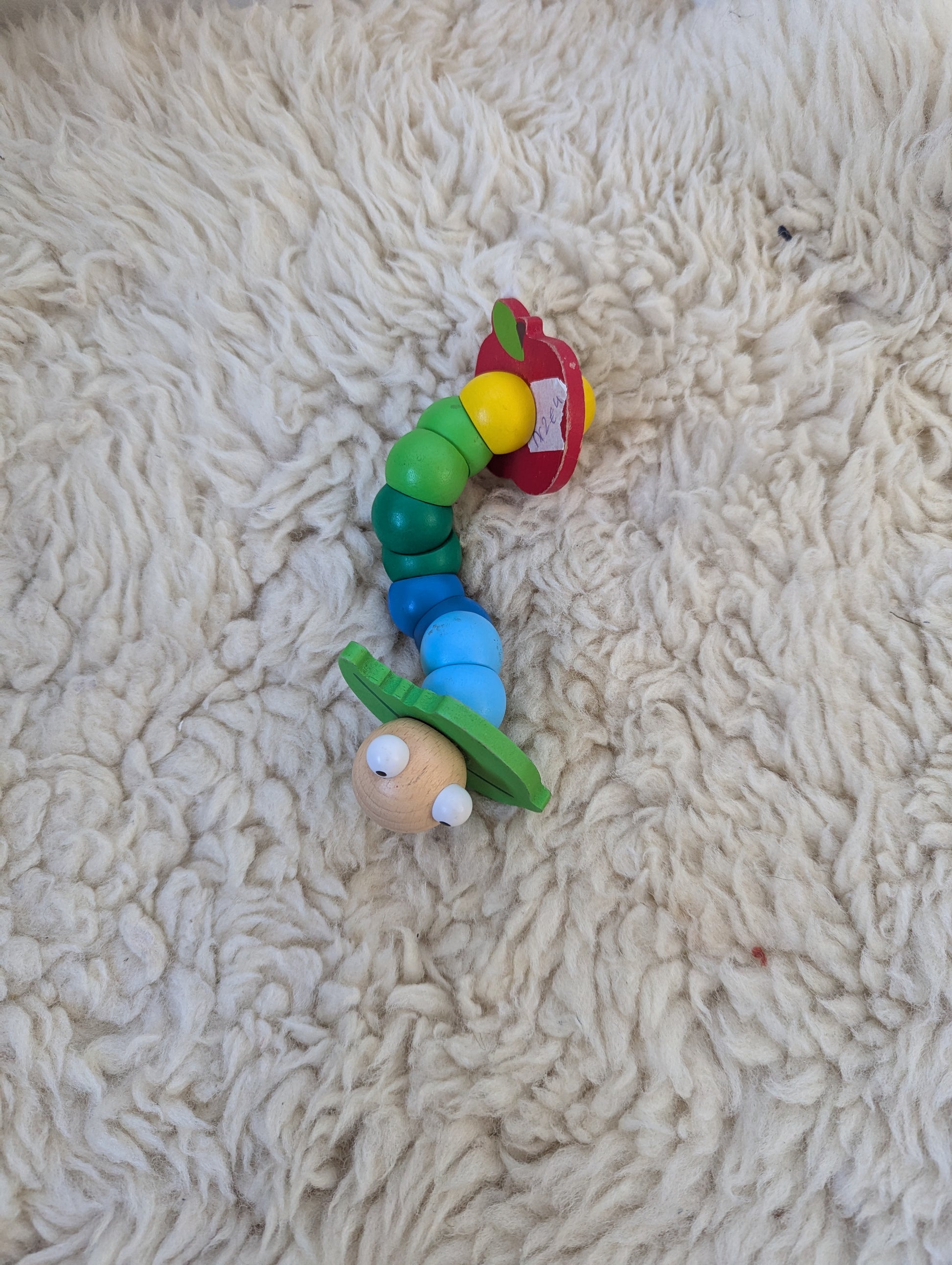 Houten rupsje nooitgenoeg. Wat gebruikssporen.