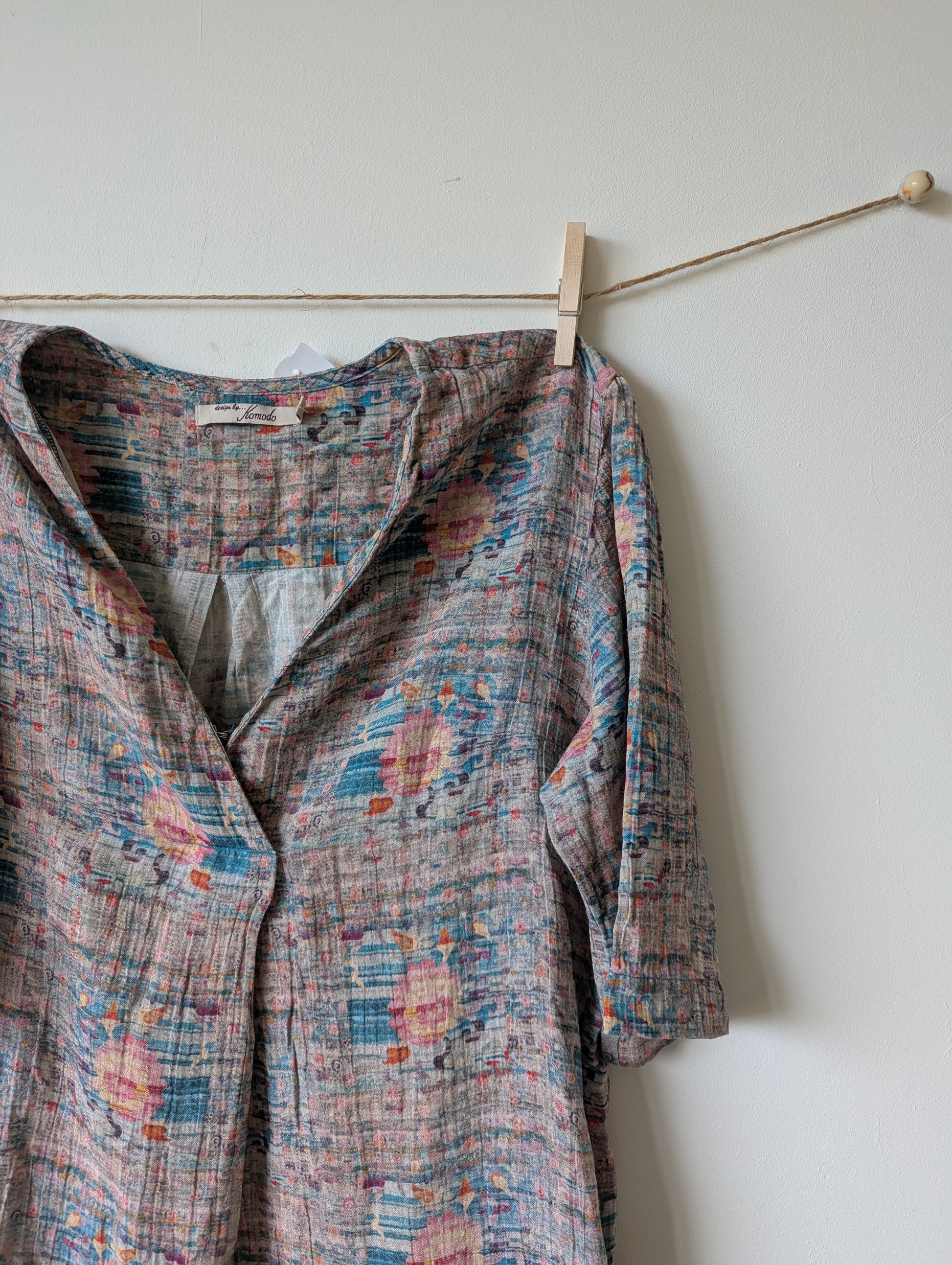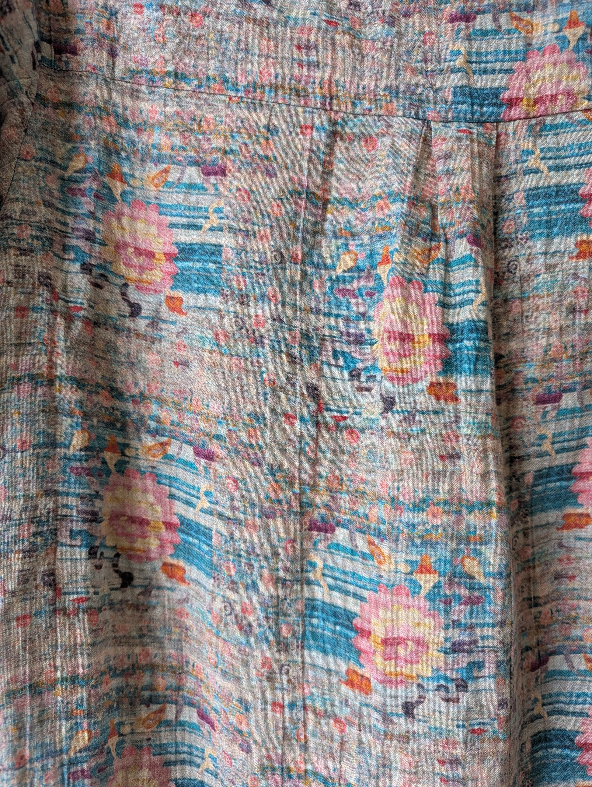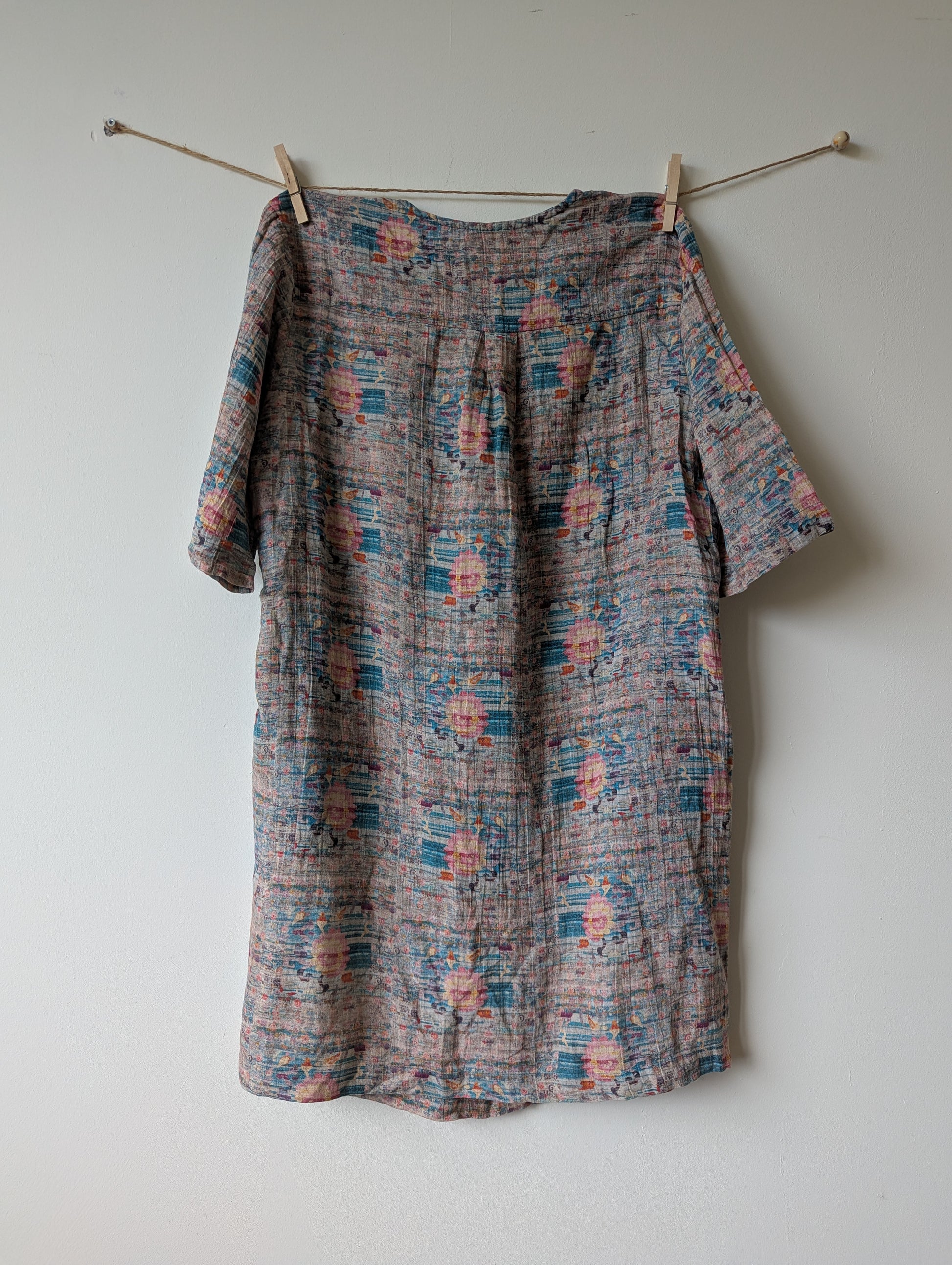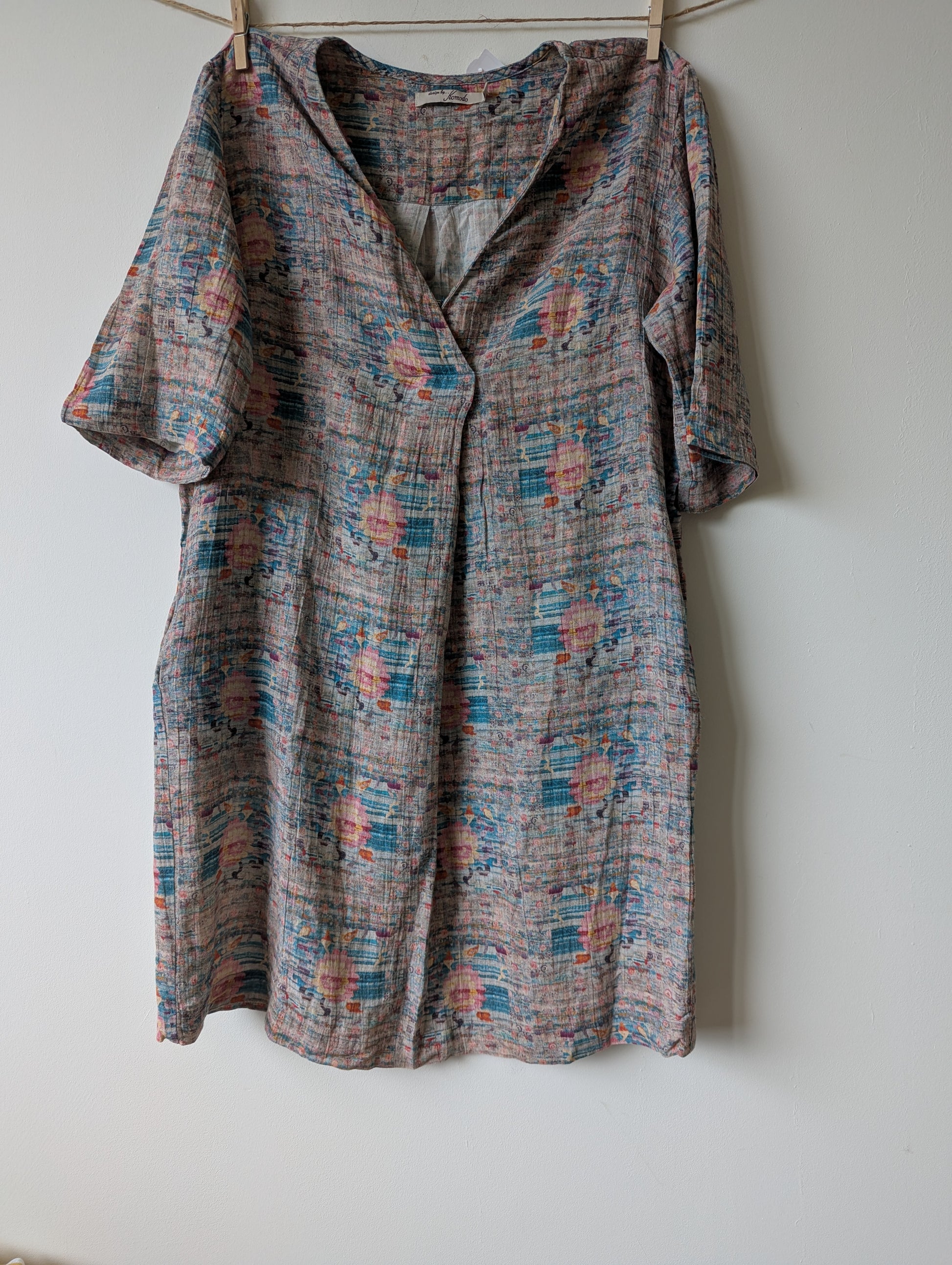 Jurkje met mooie kleuren. lichtroze, turquoise, geel, met leuk patroontje.