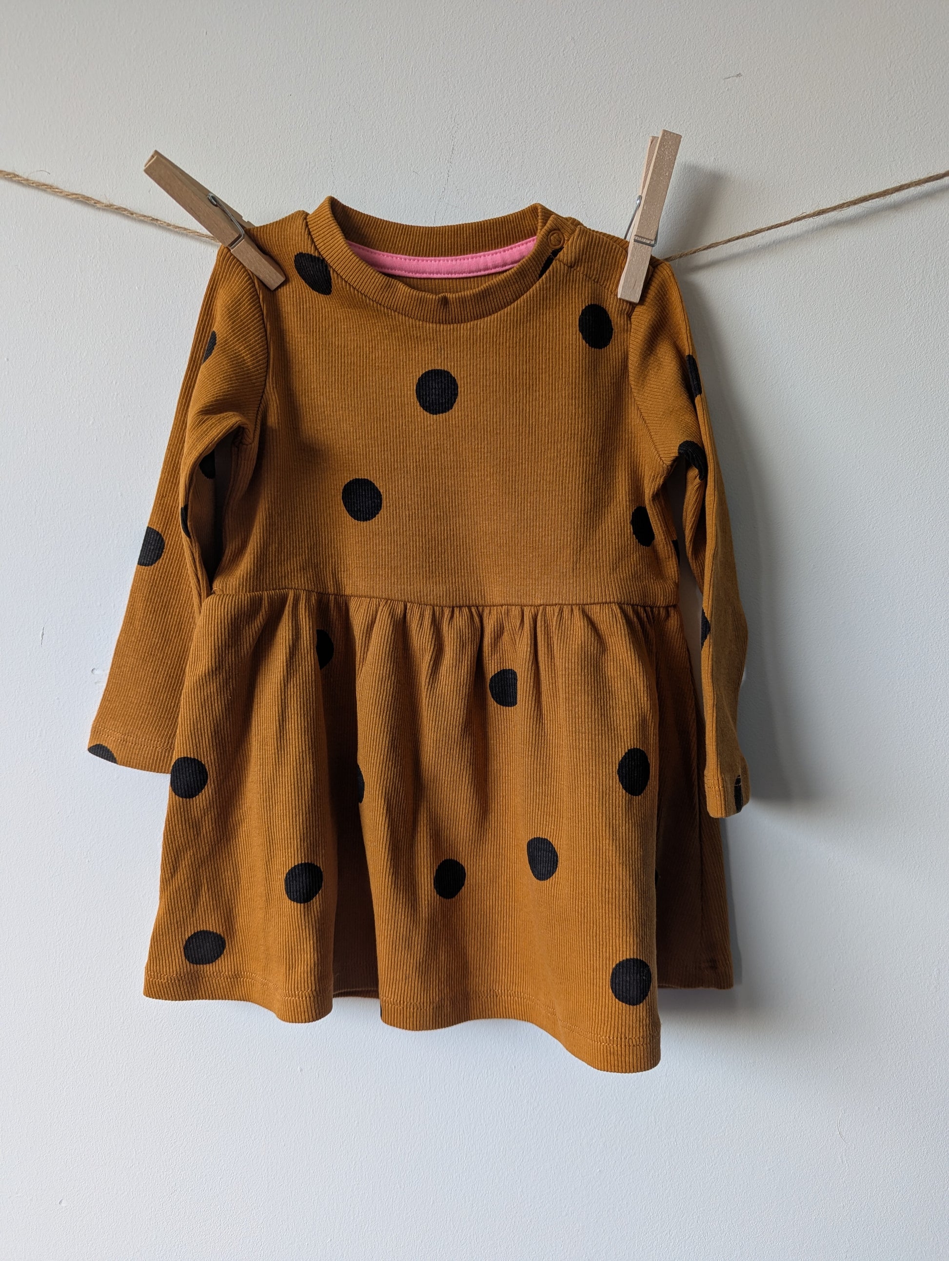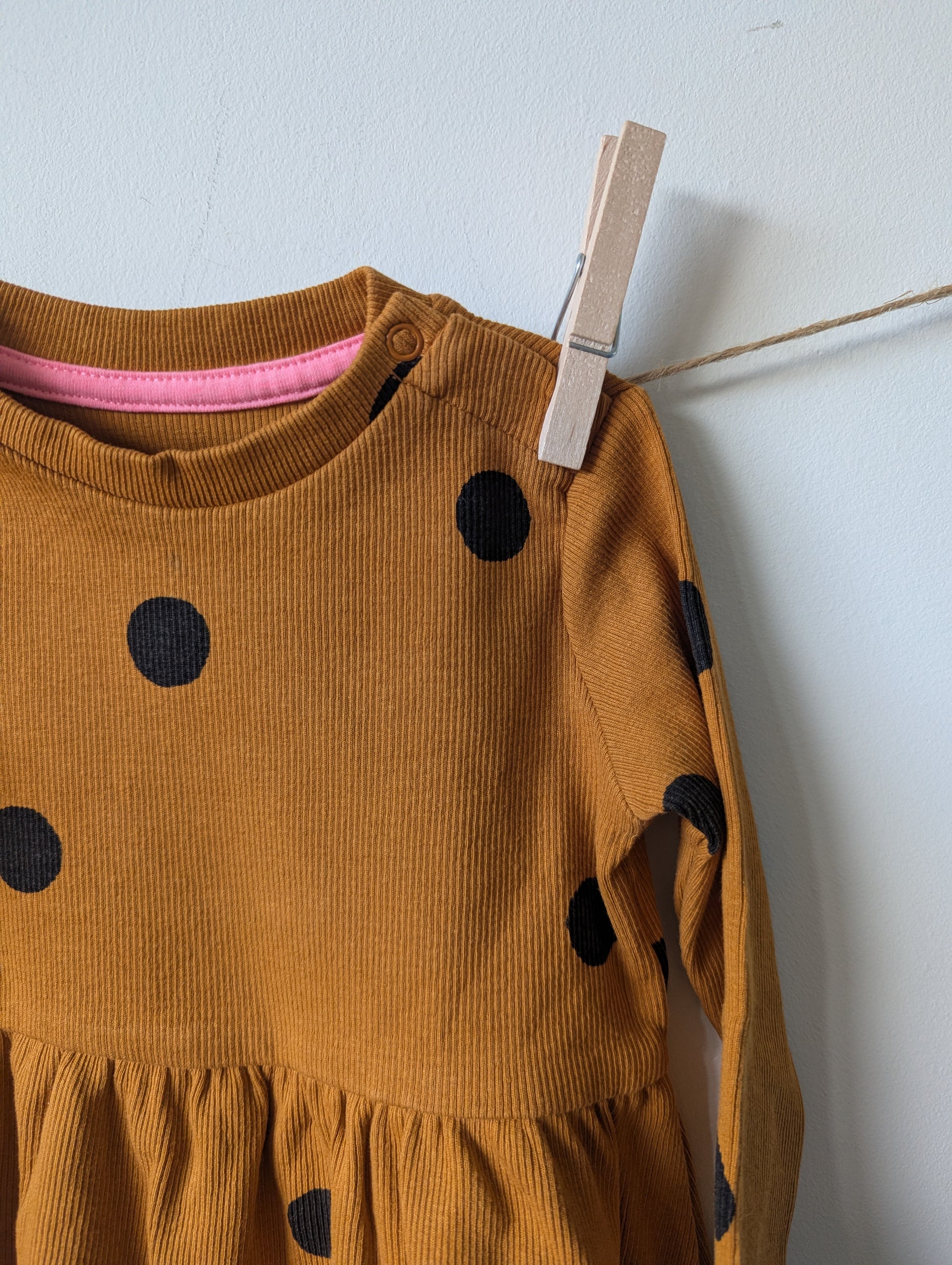 Oranje jurk met zwarte stippen , lekkere dikke stof