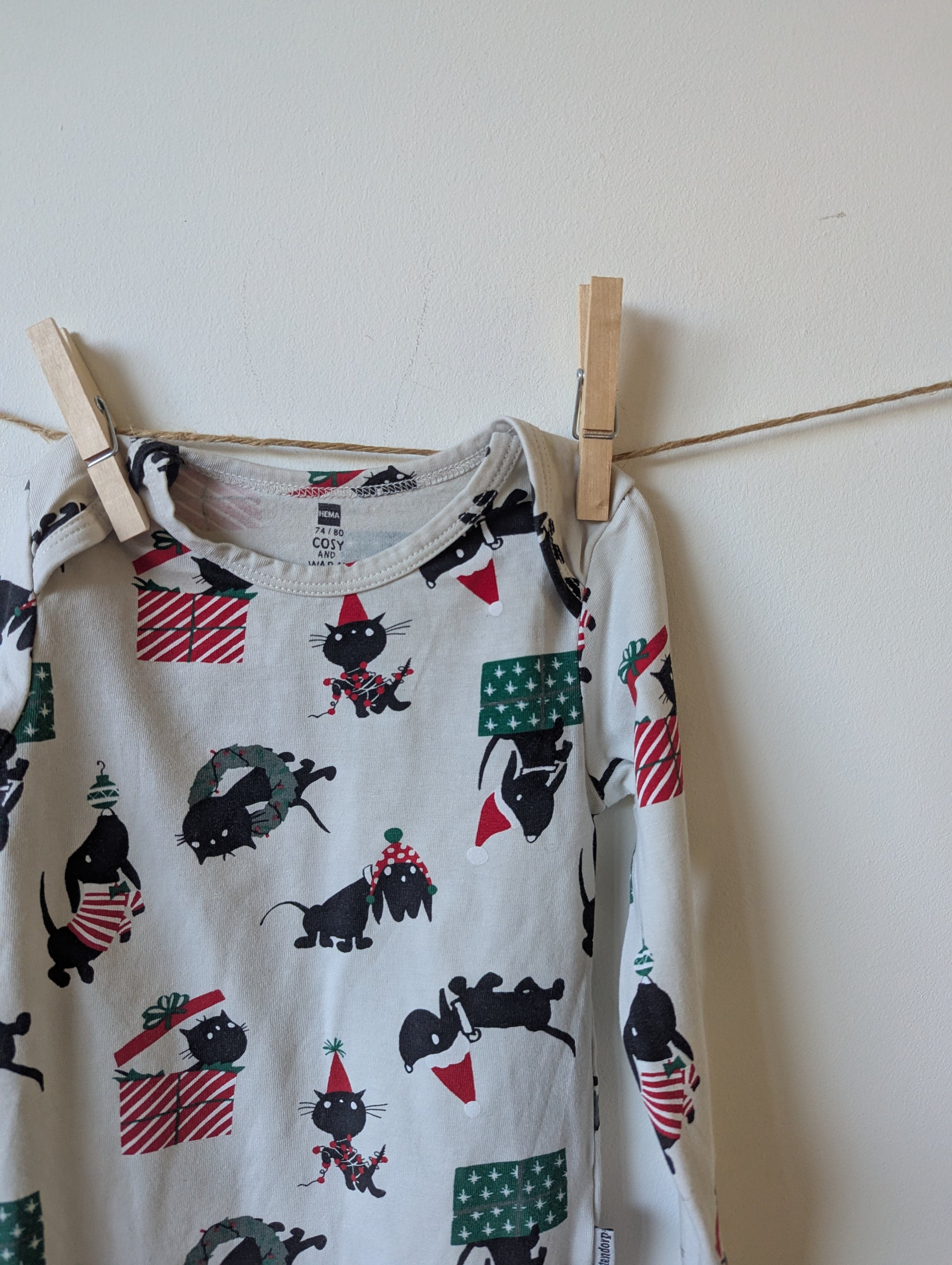 Siepie en takkie met kerst. Leuke romper van de hema.