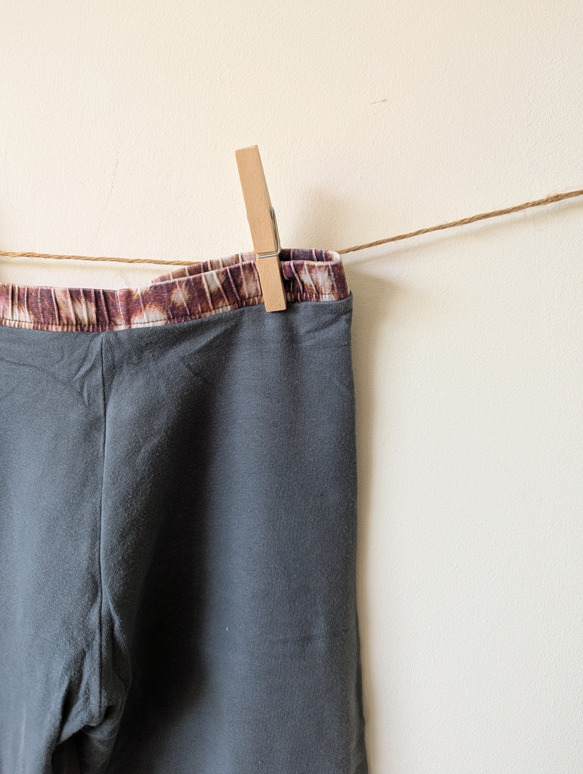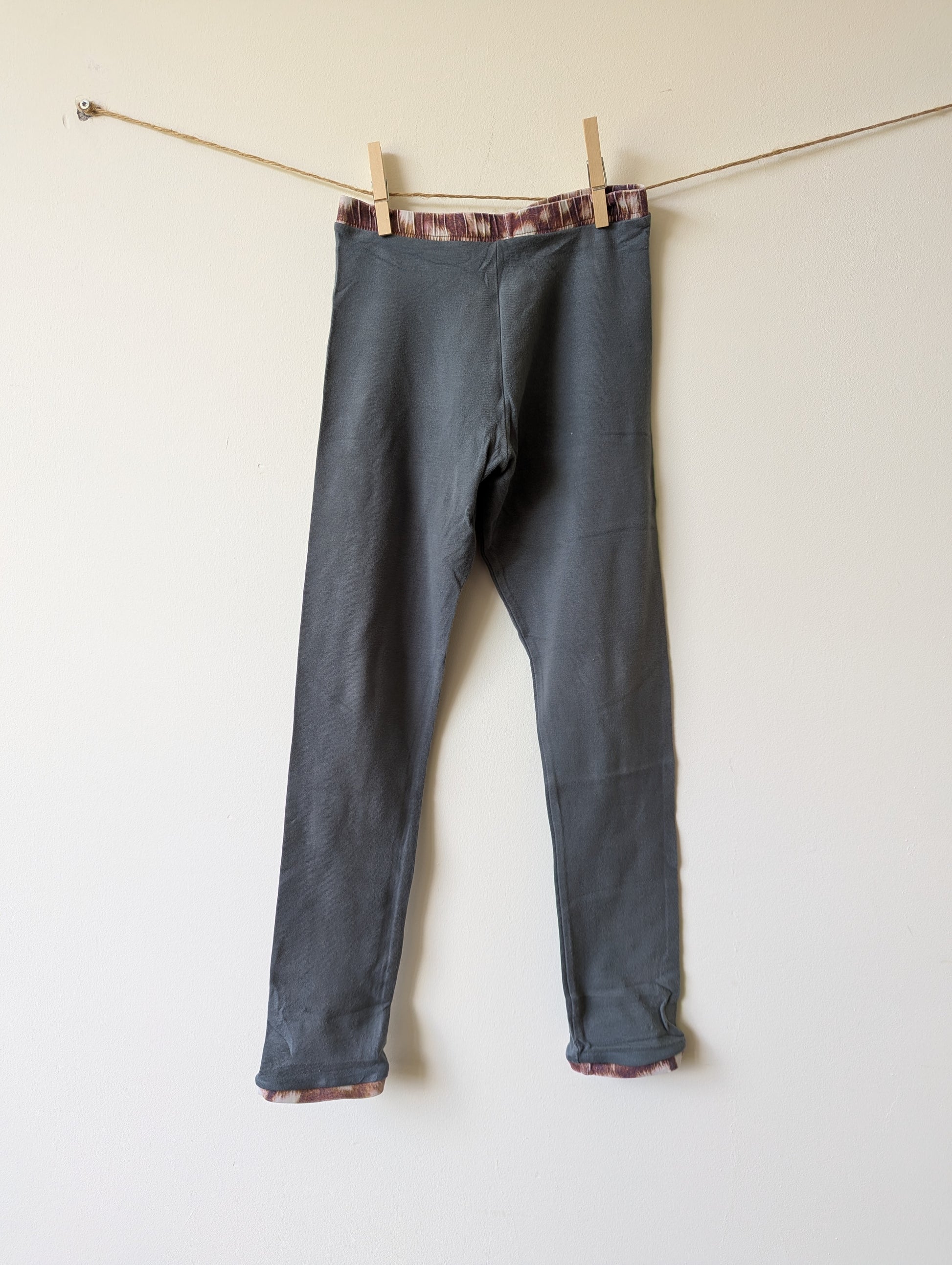 Legging van Molo in blauwgrijs achtige kleur en boorden in dierenprint. Je kunt zien dat de legging gebruikt is. Niet meer in nieuwstaat. Beetje vaal.