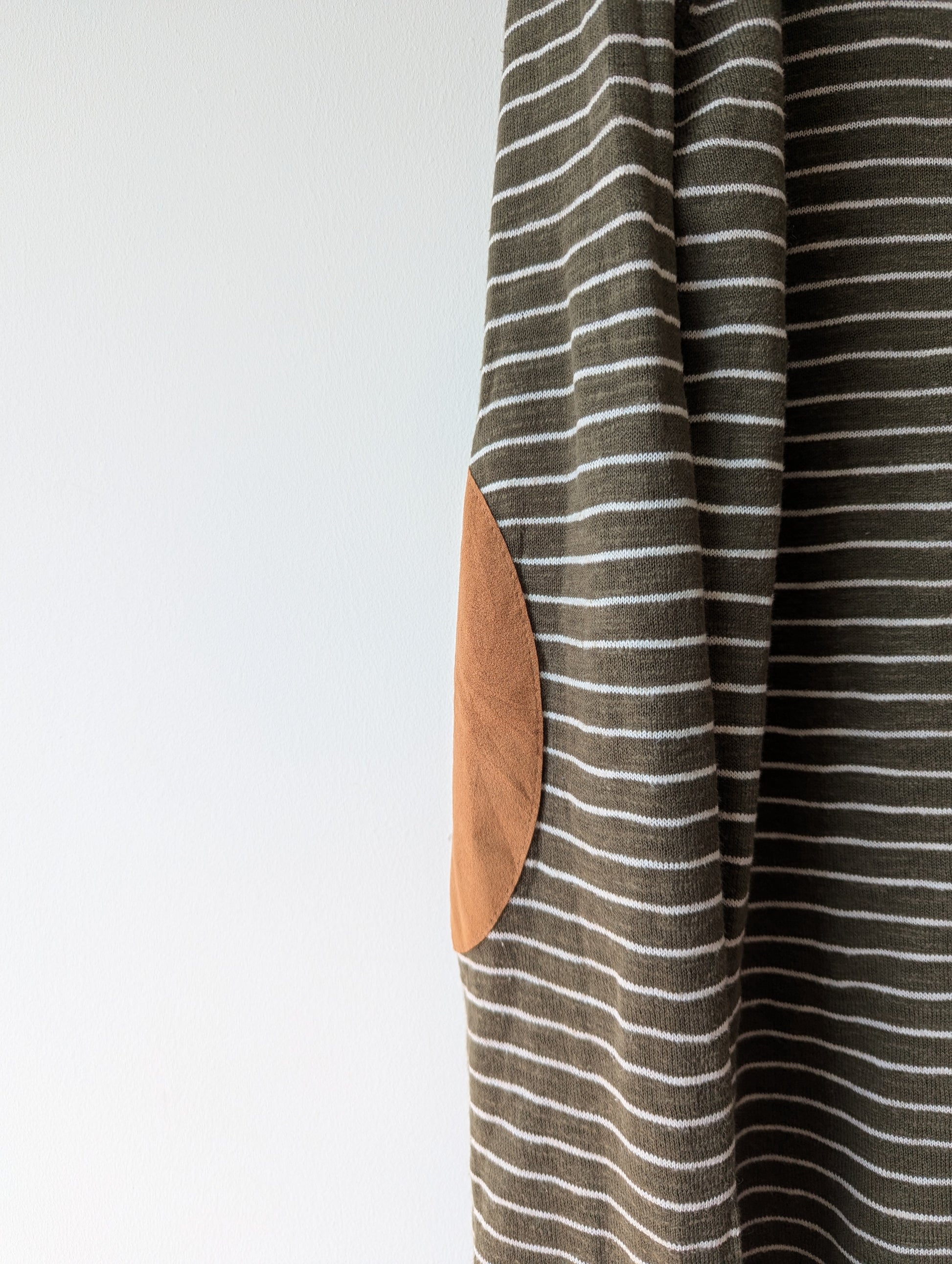 Lekker zachte olijfgroene longsleeve. Witte strepen