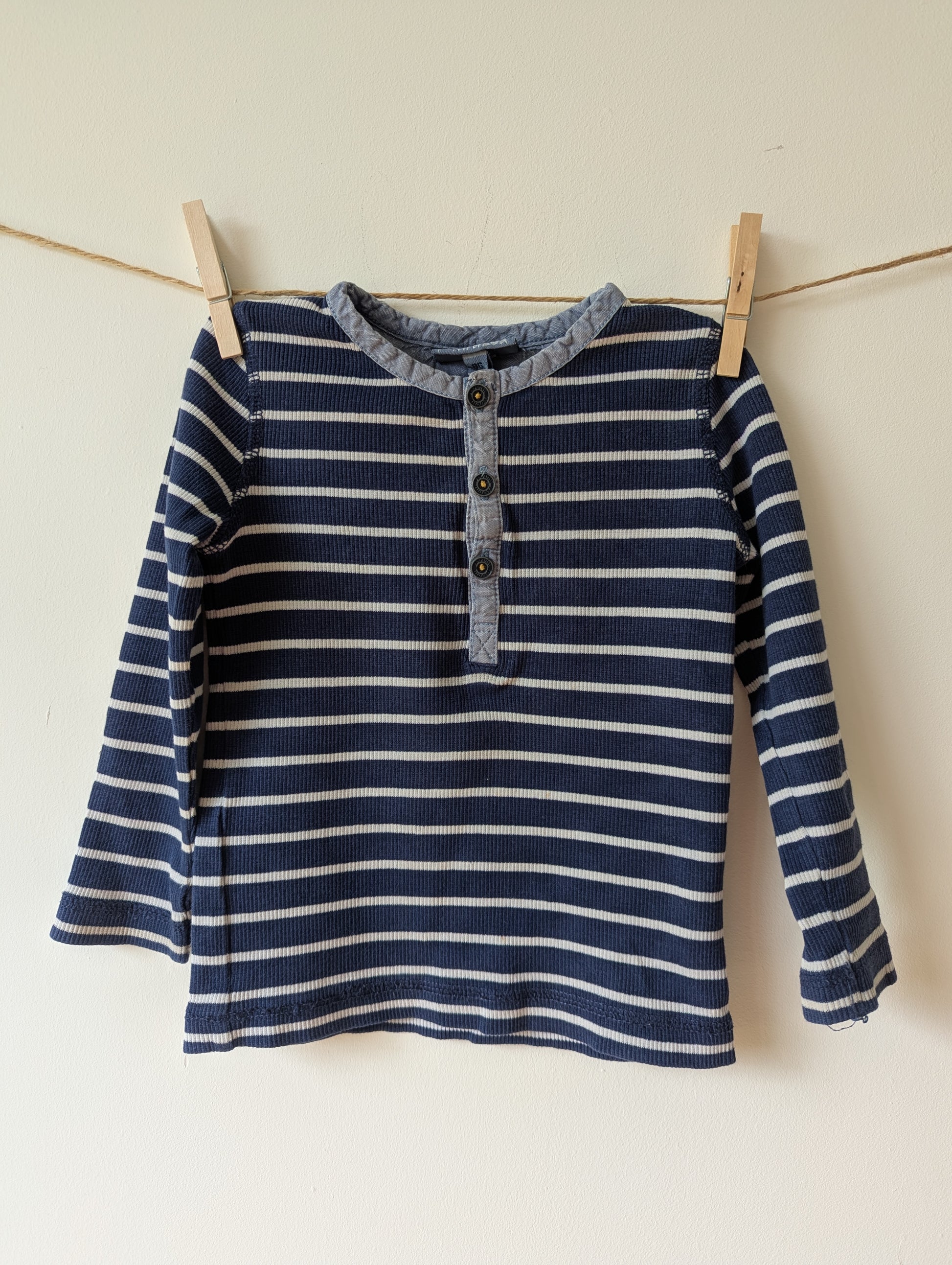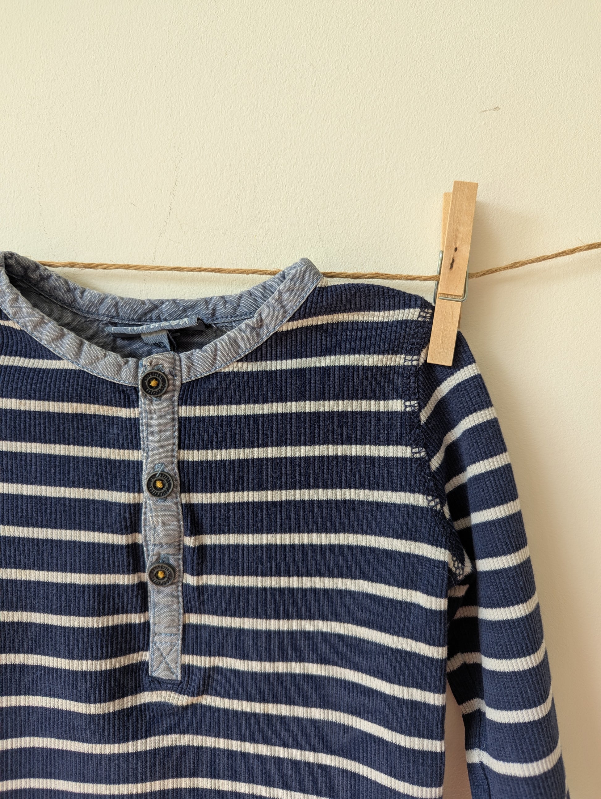Gestreept shirt marineblauw met witte strepen kraagje van denimstof