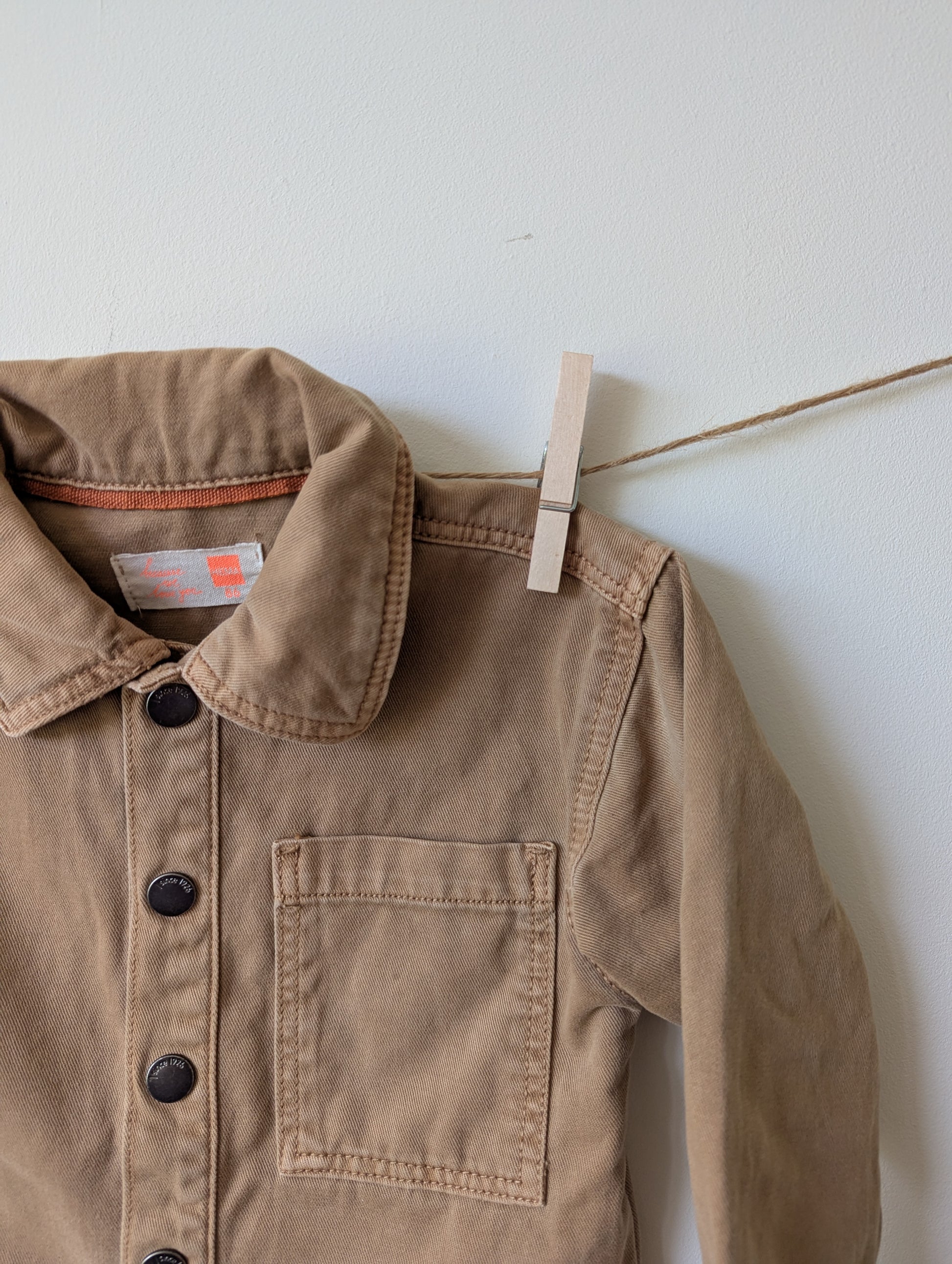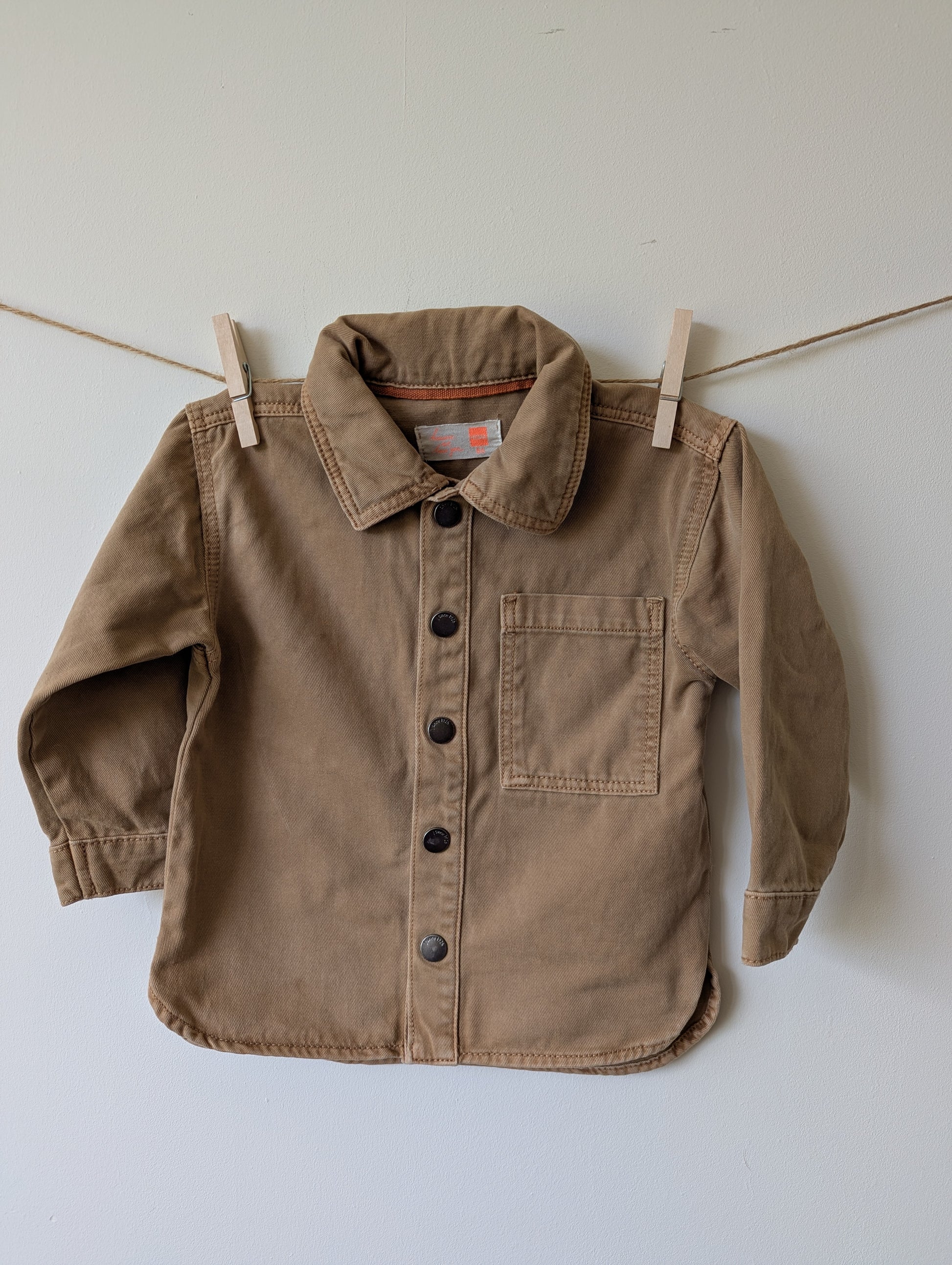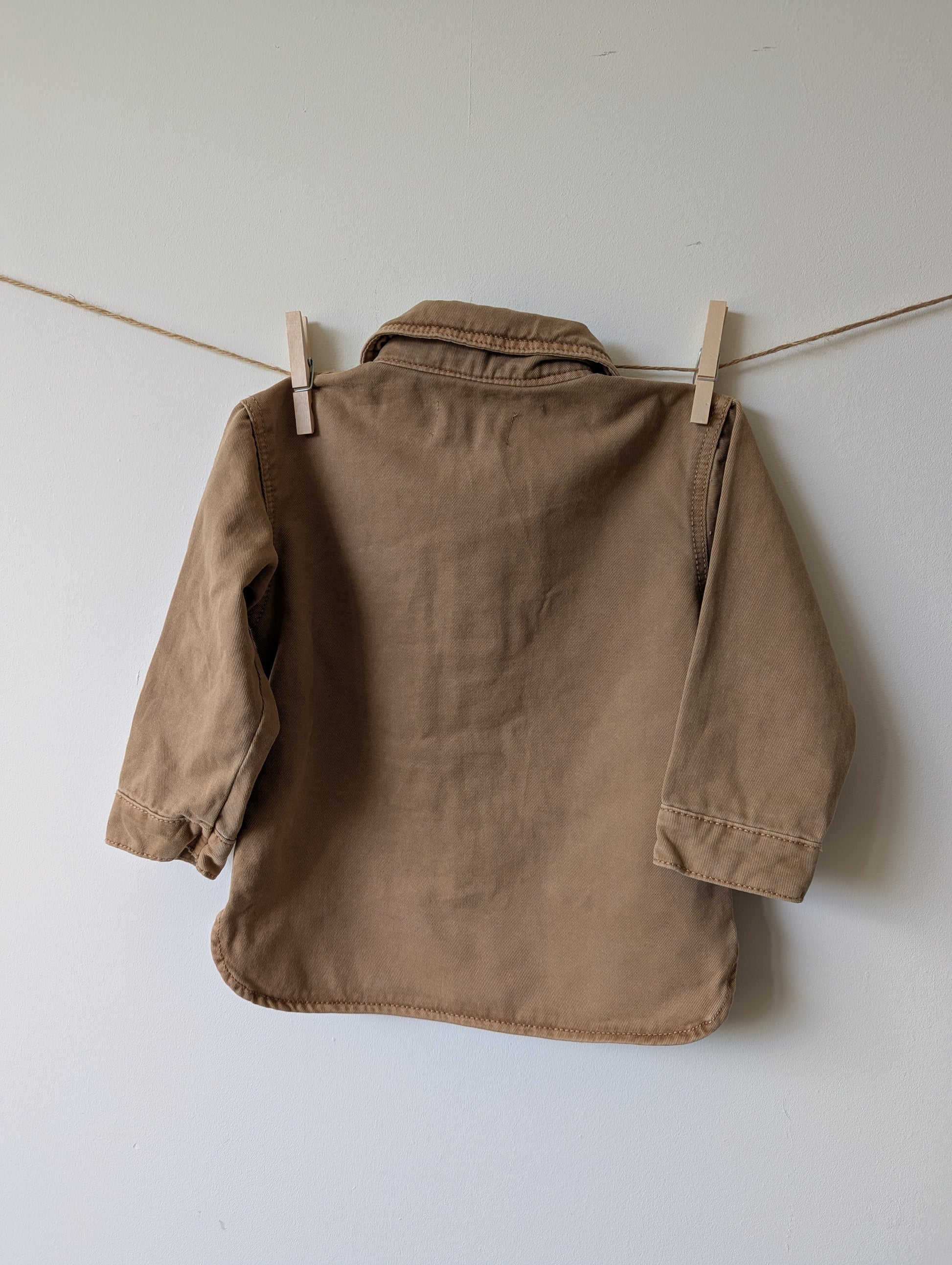 Leuk zandkleurig overhemd van de hema, in denim stof. Lijkt alsof er een klein vetvlekje op de voorkant zit gaat er met wat ossengal zeep denk ik wel uit.