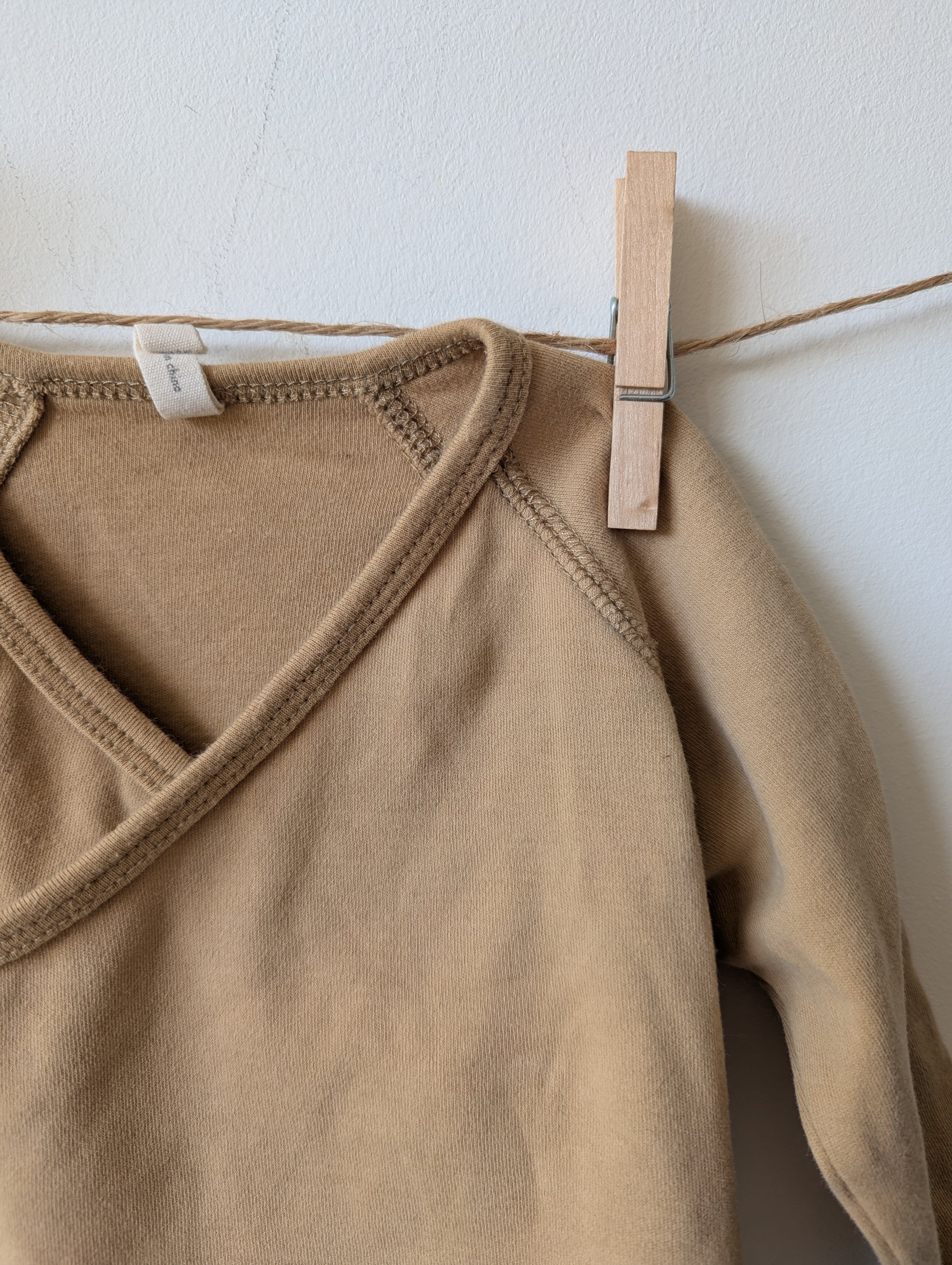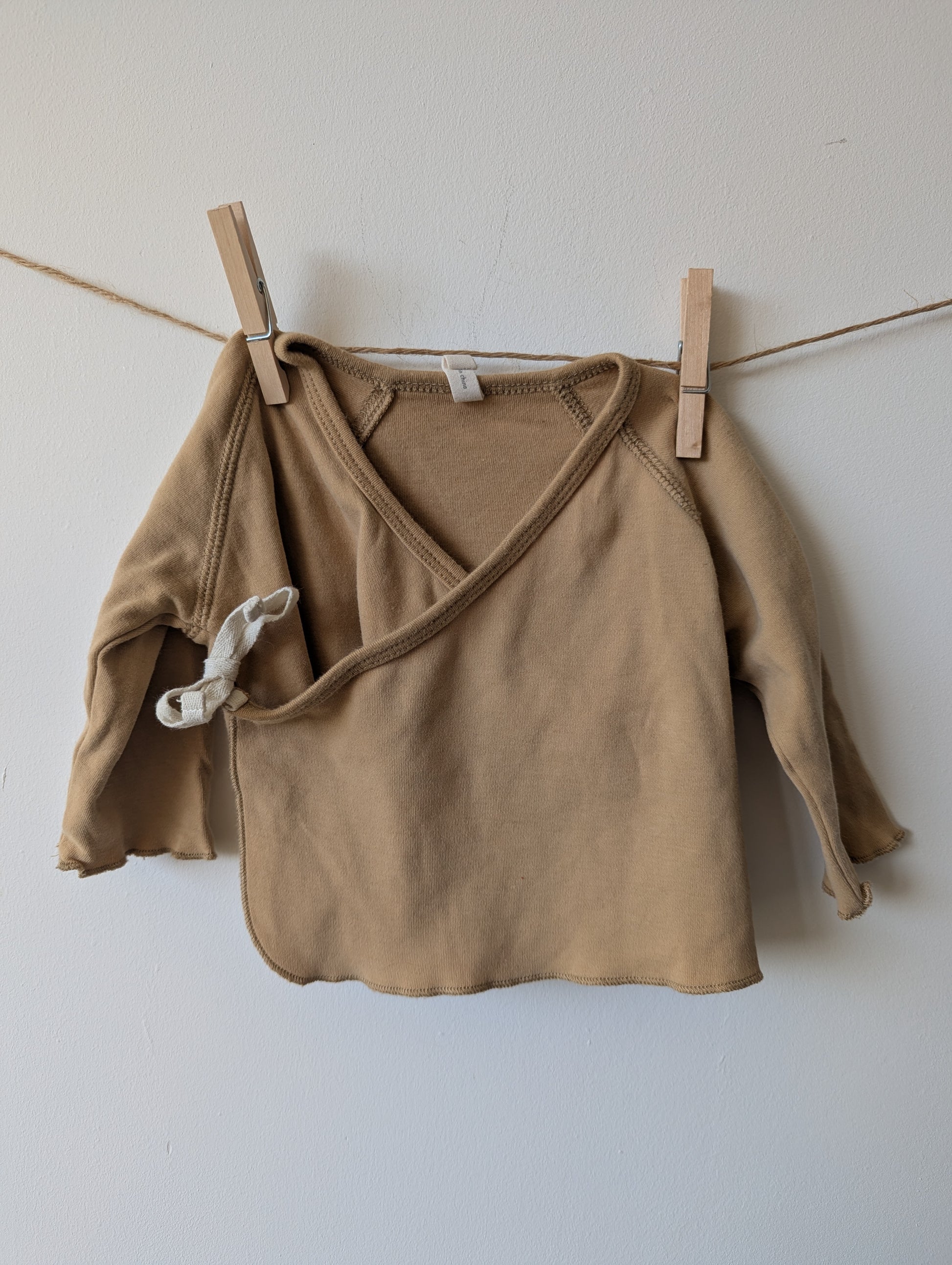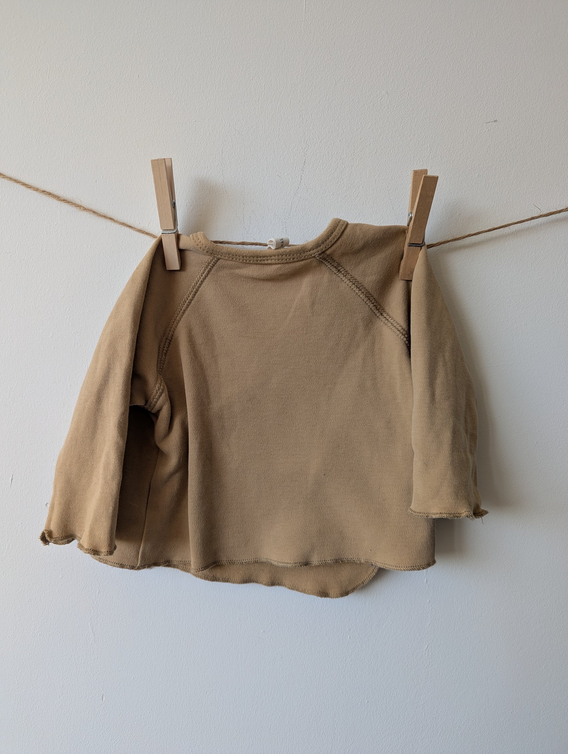 kleur is licht mosterdbruin/geel. Lekker zacht en mooi afgewerkt vestje.