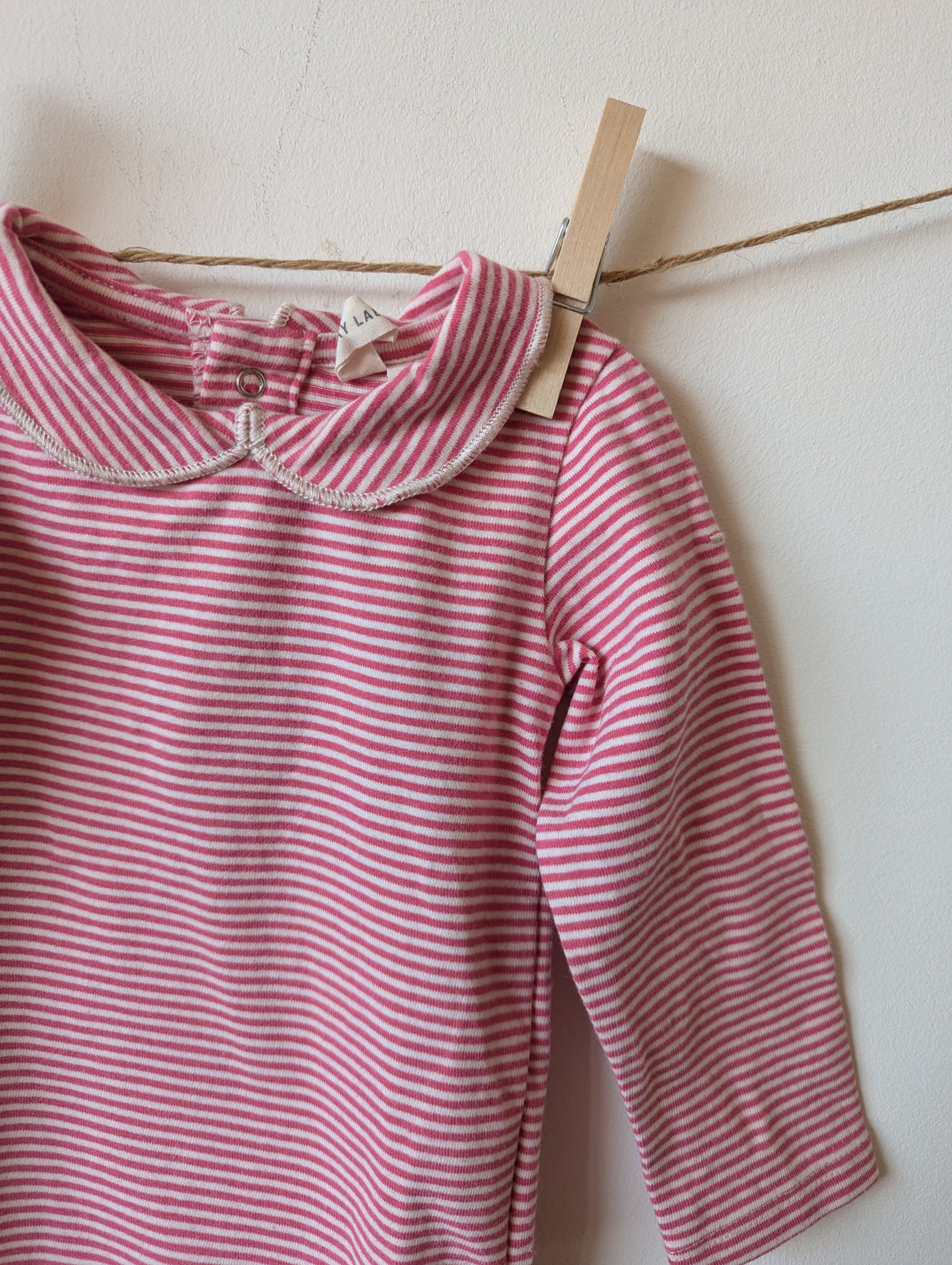 wit roze gestreepte romper met kraagje in heel mooie staat