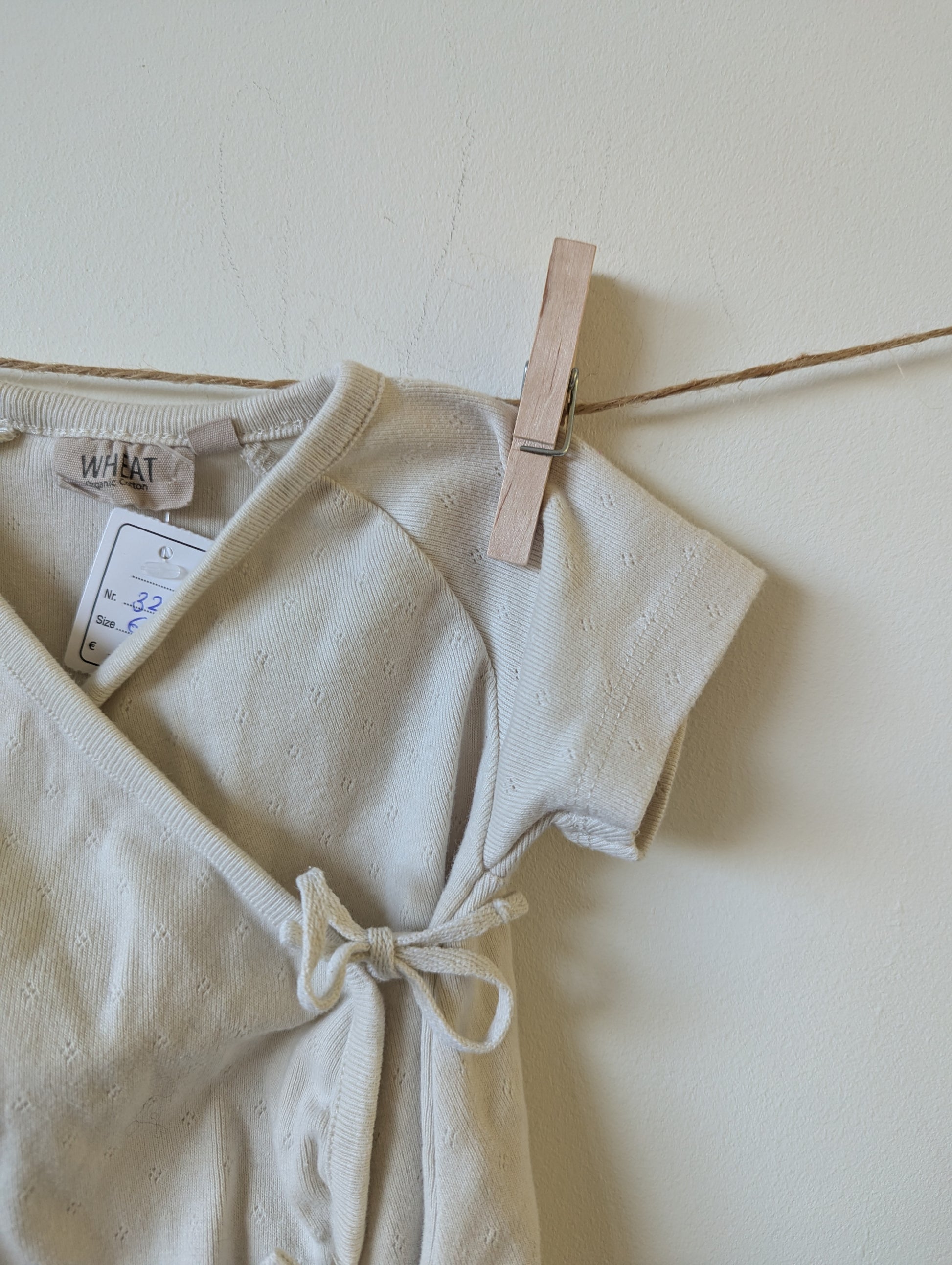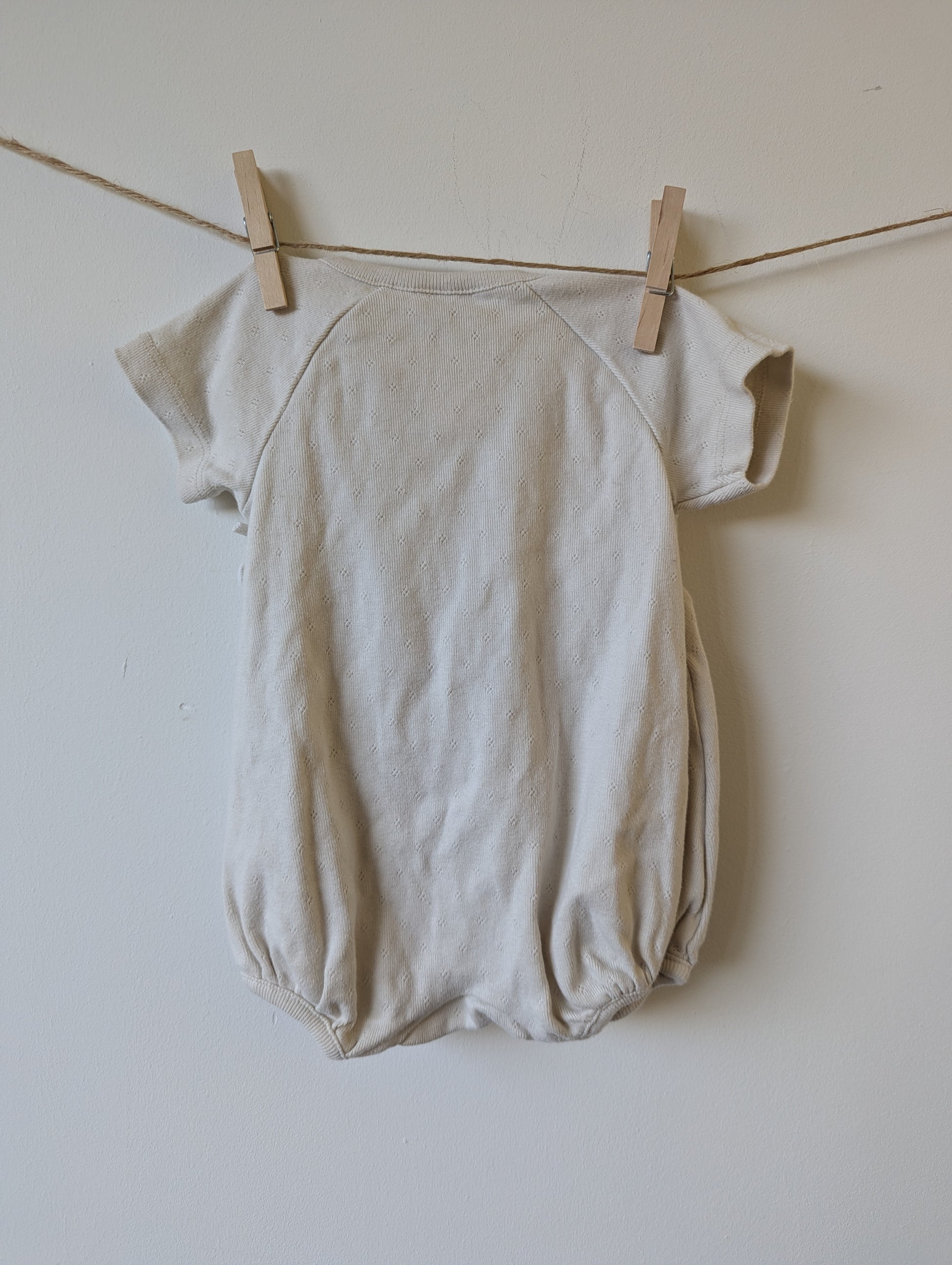 Dit prachtige pakje lijkt een romper maar heeft twee pijpen. Misschien is dit meer een zomer pakje maar met een wollen maillot ook zo cute voor de feestdagen. Stof is wel lekker dik