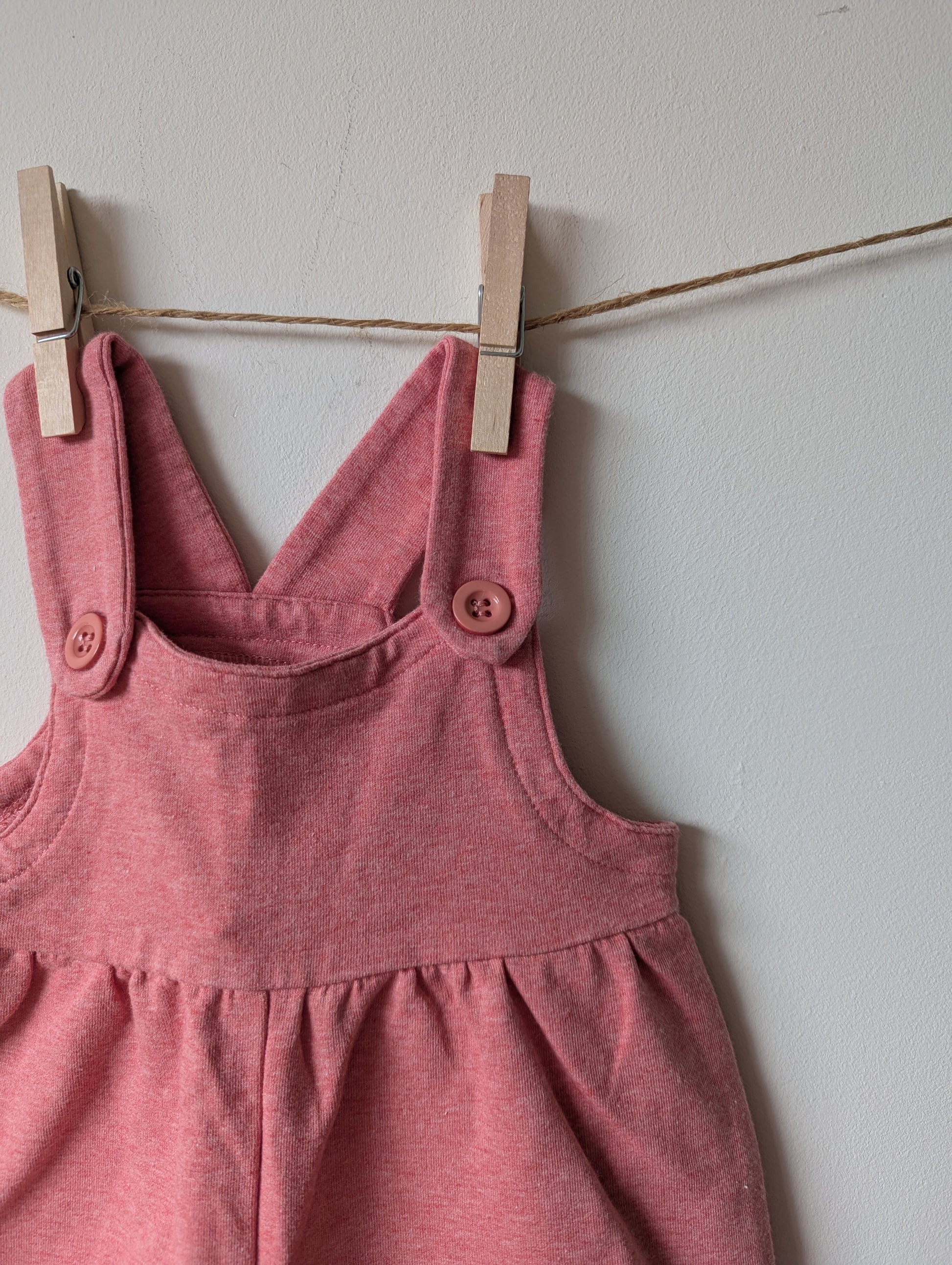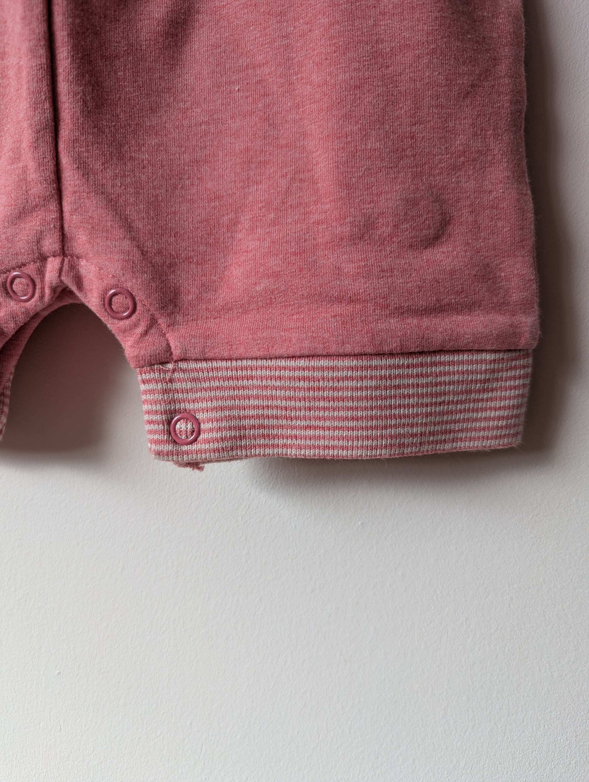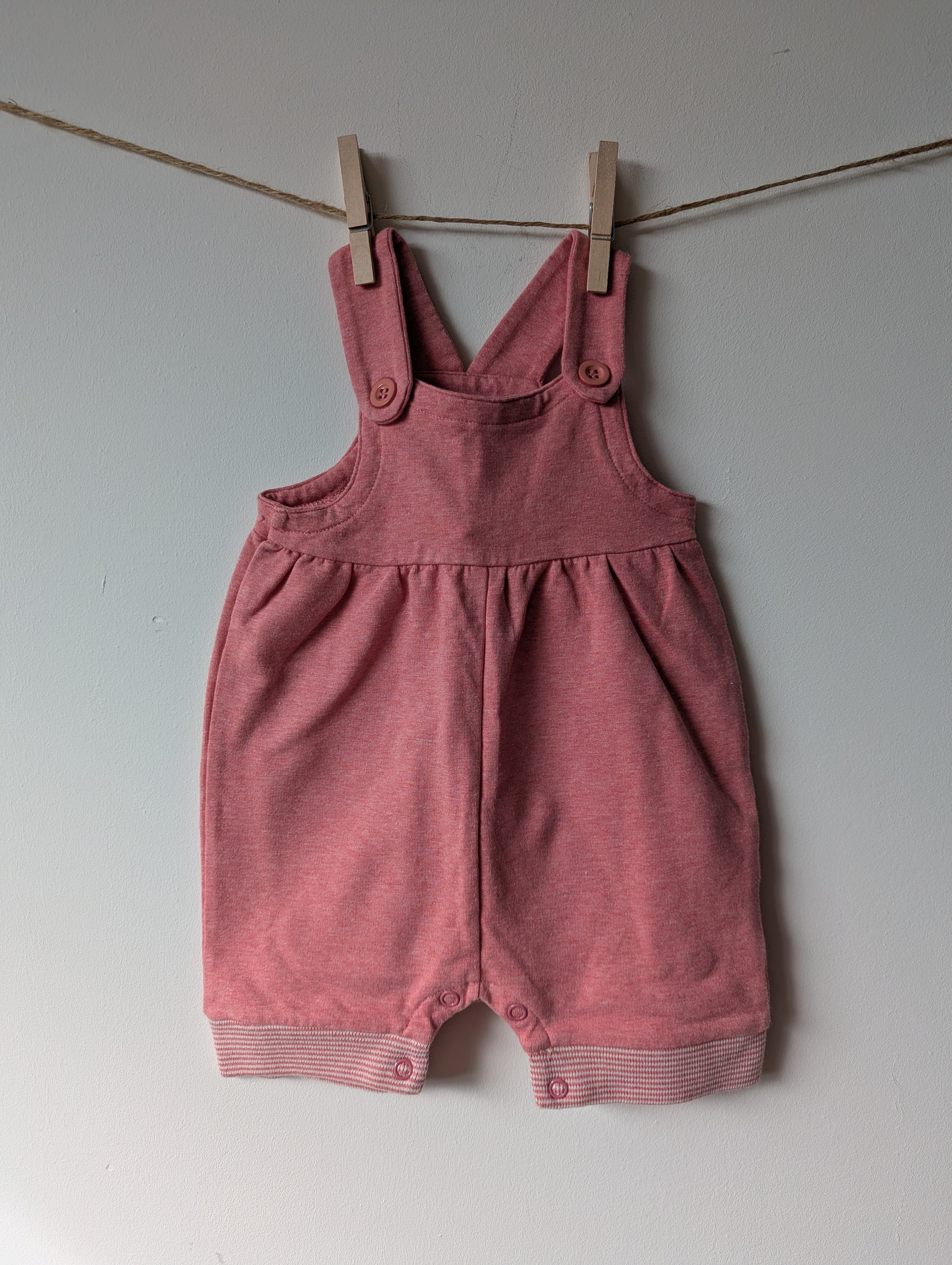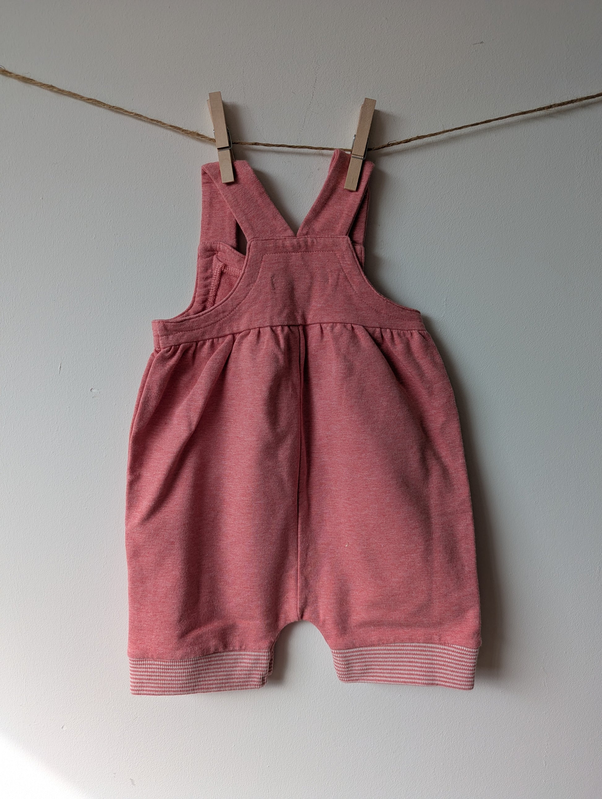 In mooie staat. Roze salopette. boordje onderaan is wit-roze gestreept. Lekker zacht.