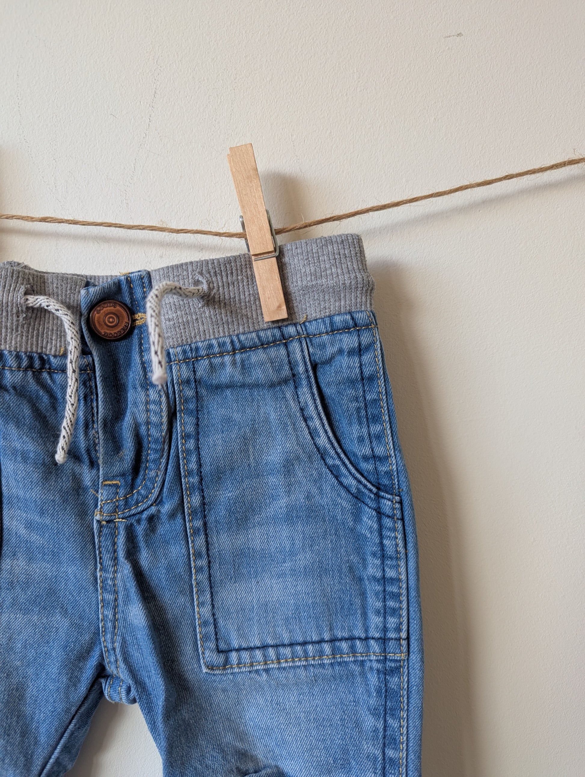 Spijkerbroek met grijze elastische band. In goede staat