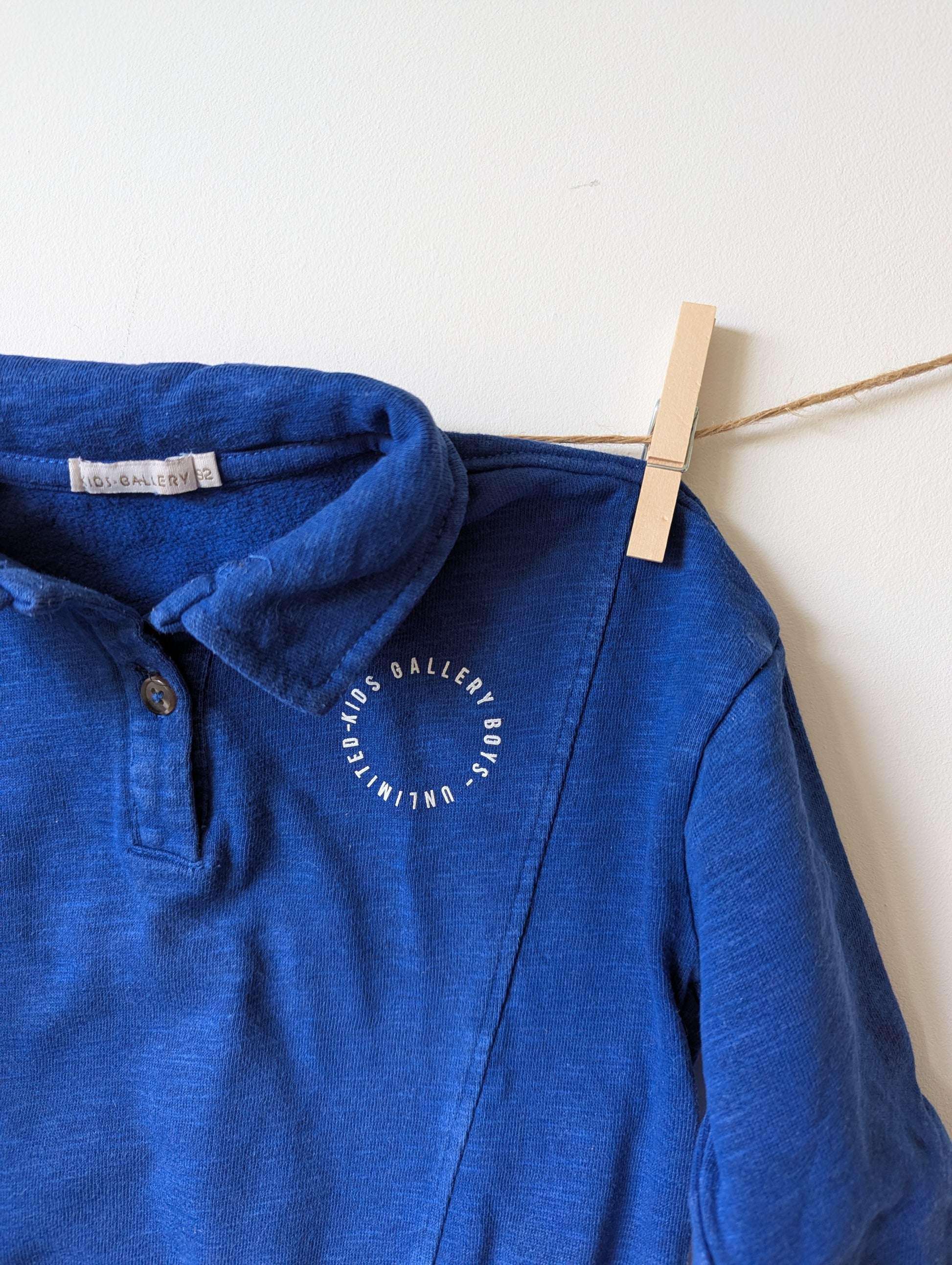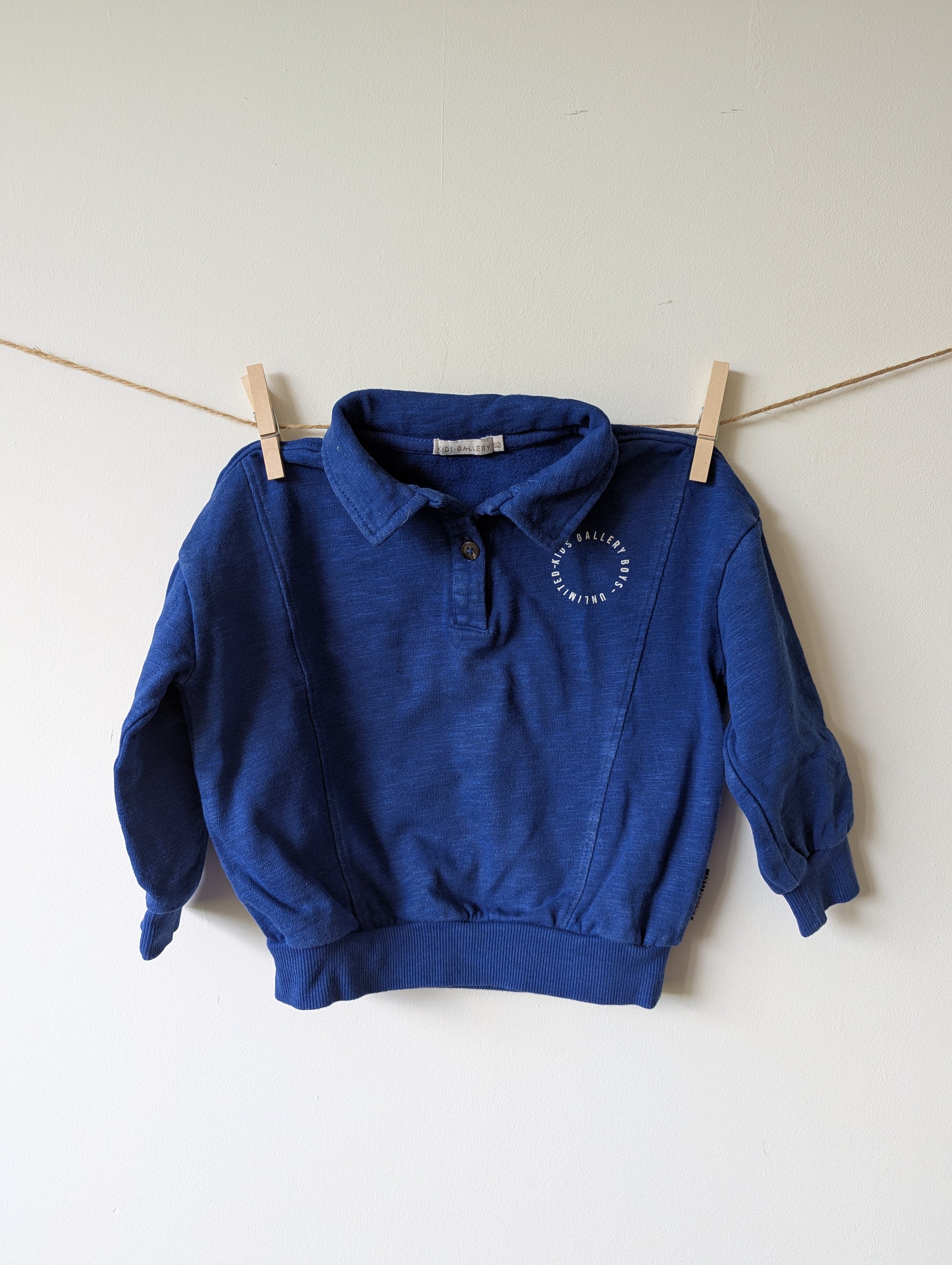 Mooie diepe blauwe kleur truitje van het merk kids gallery met kraag. Nog in mooie staat