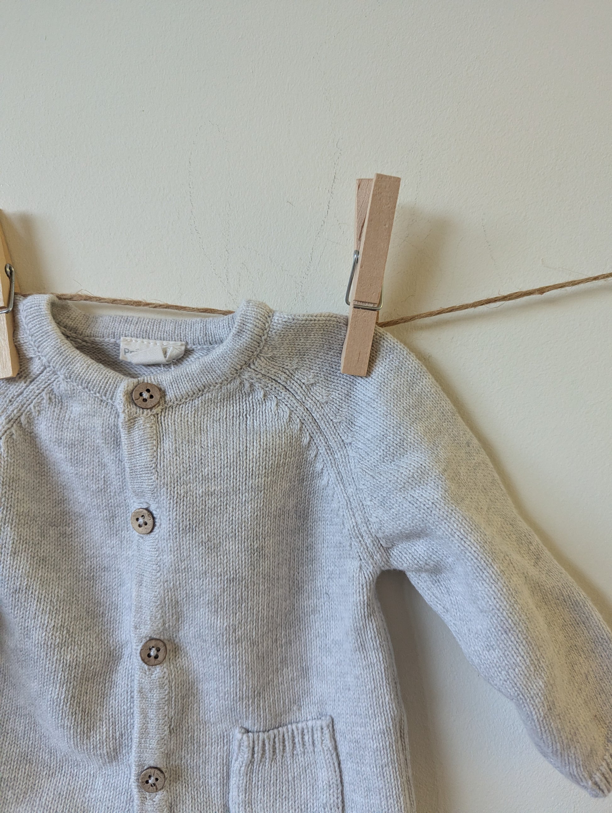 licht grijs vestje met kokosnootknoopjes