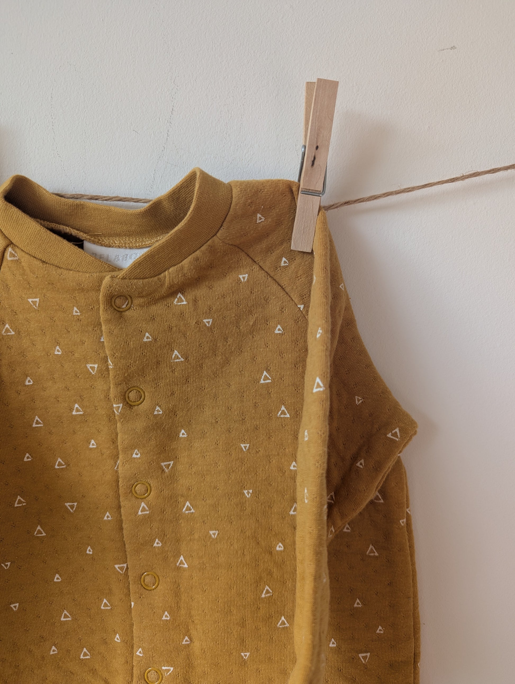 Zacht mosterdgeel vestje met witte driehoekjes