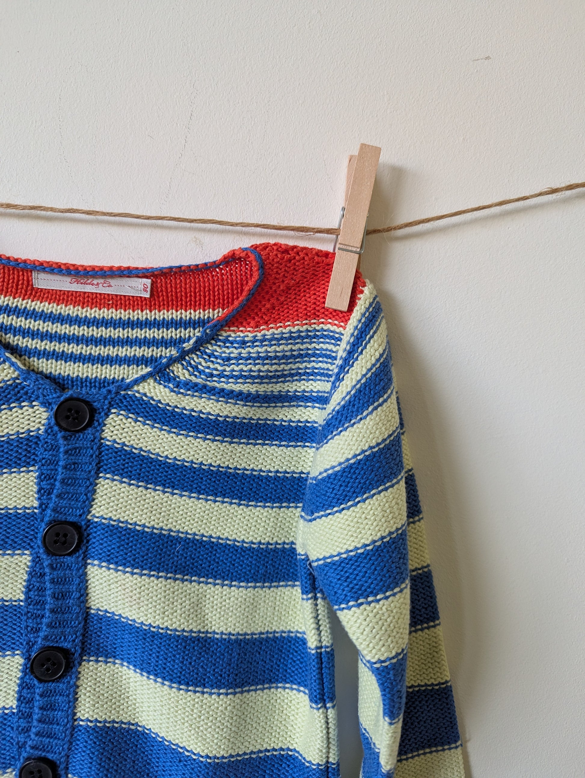 Gebreid vest in lichtgeel blauw en oranje. In heel mooie staat.