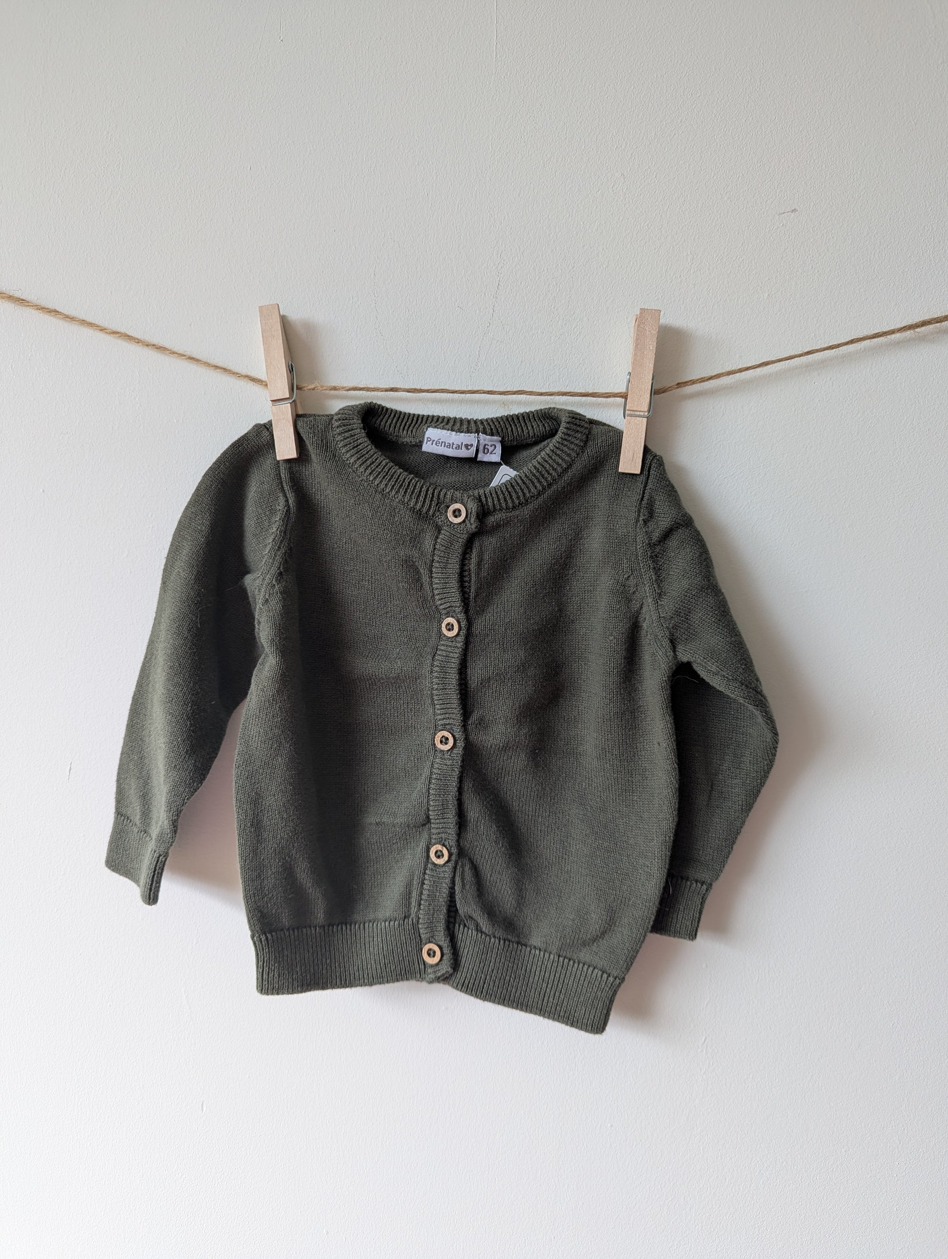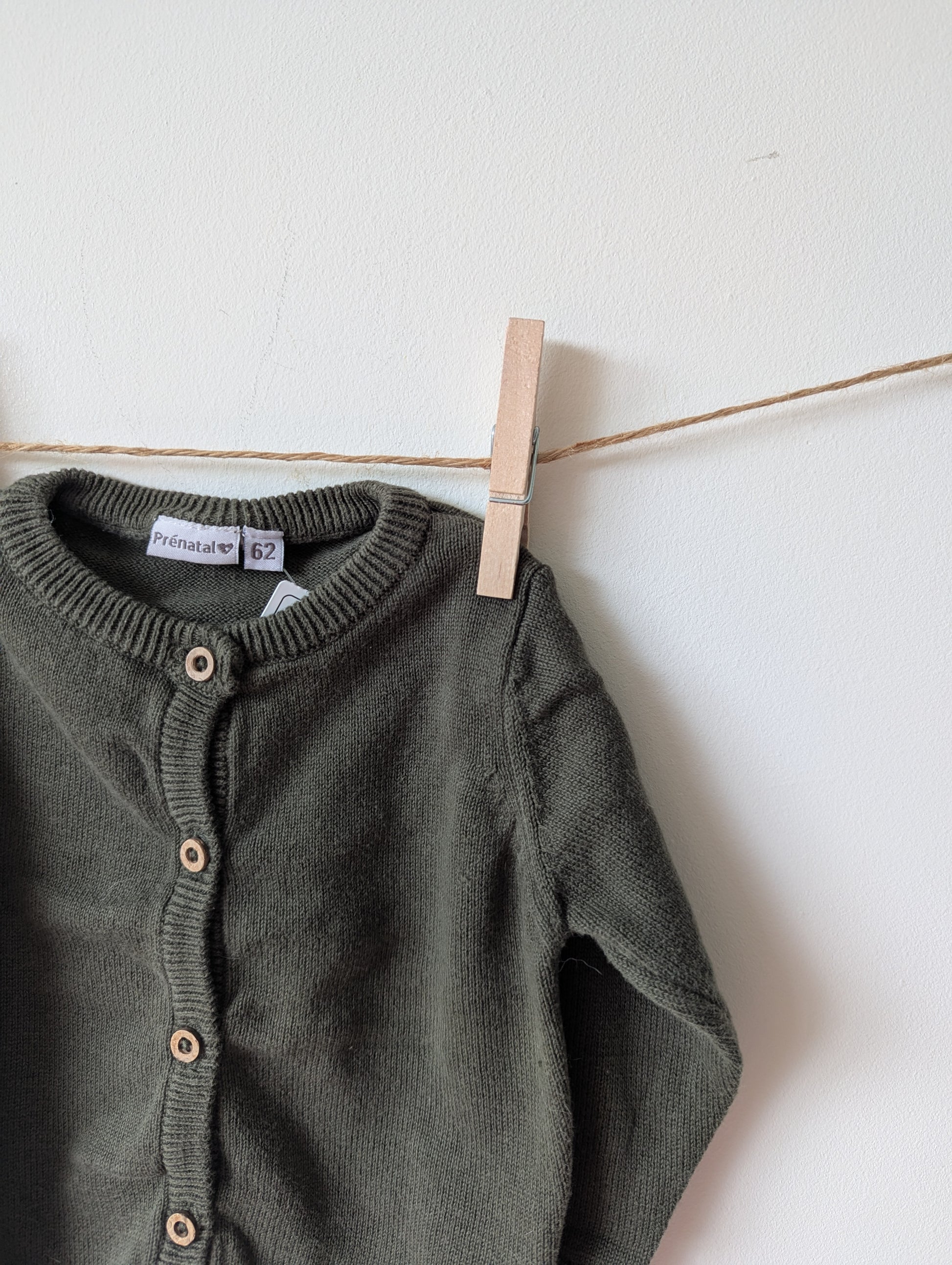 Donkergroen vestje met knoopjes van kokosnoot. Lekker herfstig en in mooie staat.