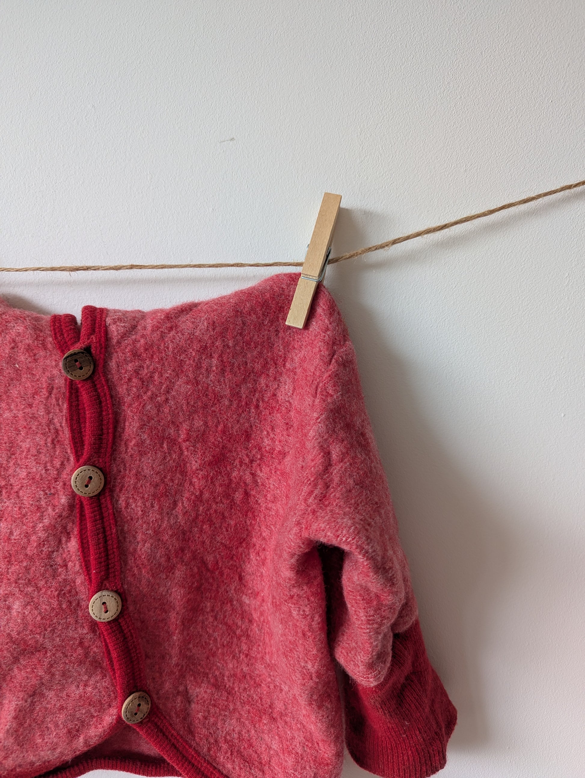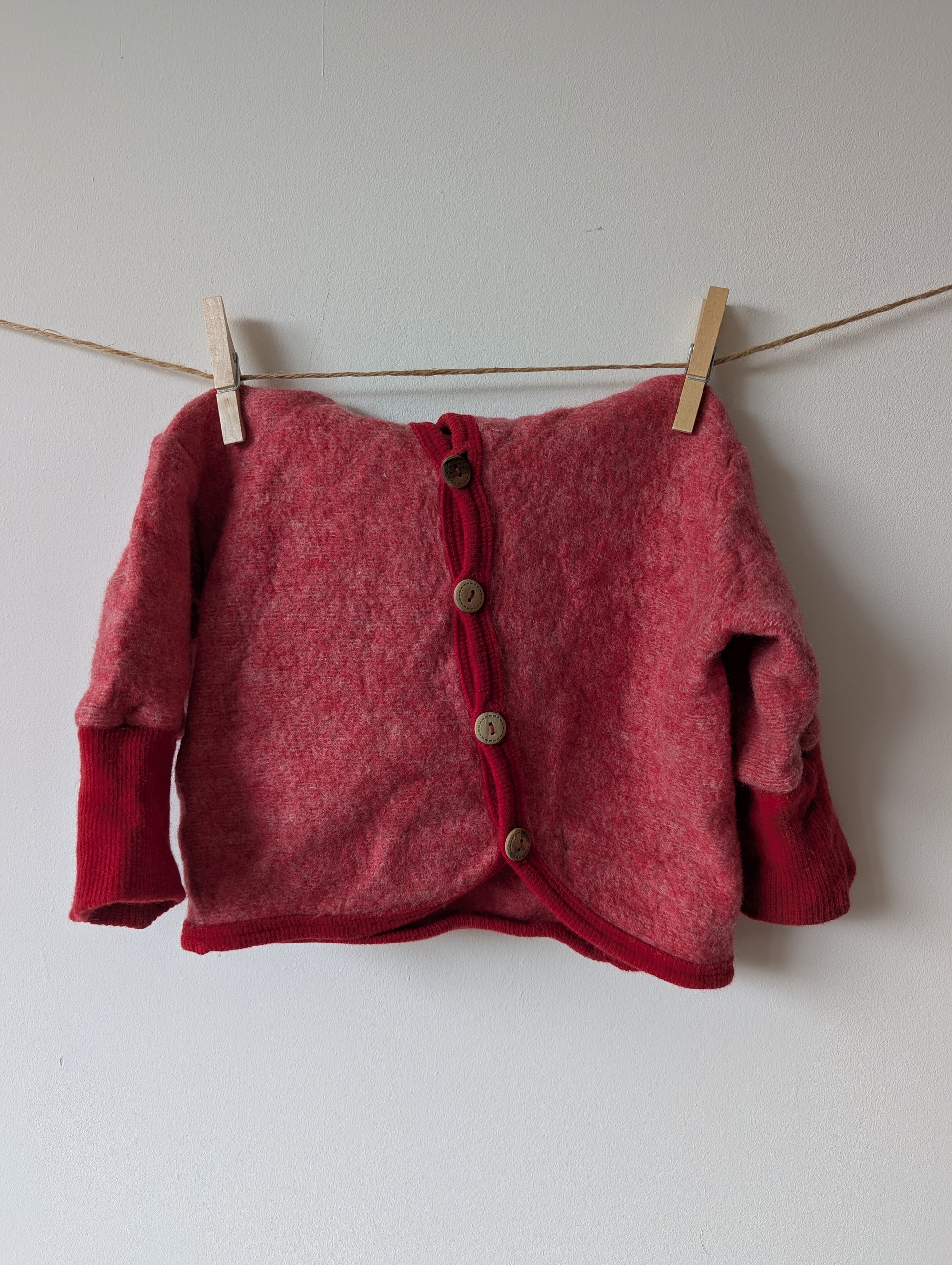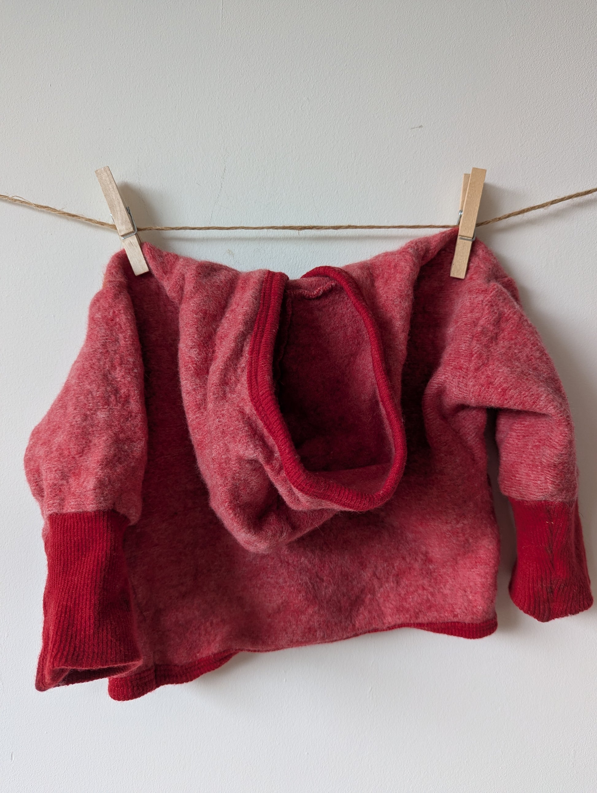 Let op dit jasje is vervilt. Was eerst een 62/68 is nu een 50/56. Daarom ook een kleine prijs. Natuurlijk is zo'n jasje niet meer zo mooi als ie was maar deze kan nog heel goed en is lekker warm. Wol is nog soepel.