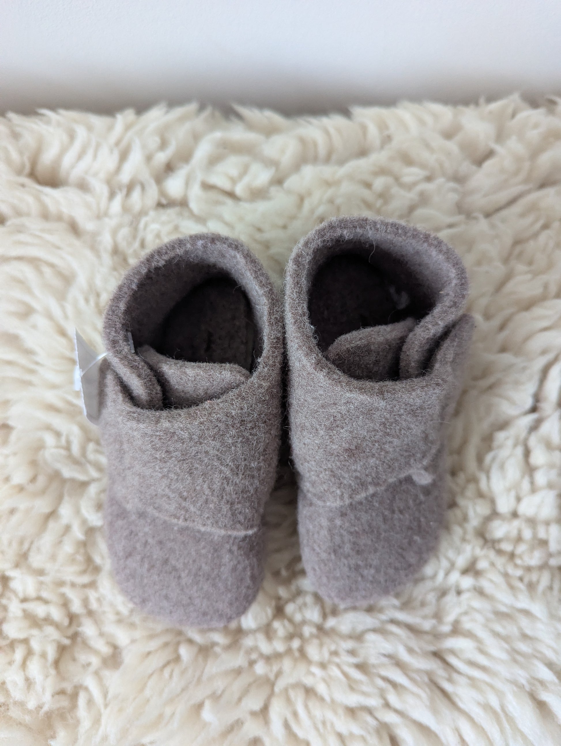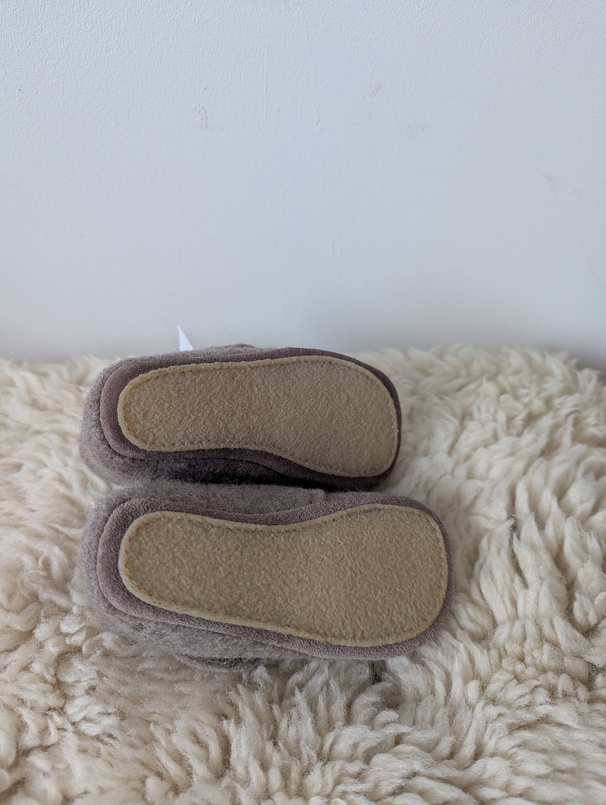 Lichtbruine sloffen in nieuwstaat. met zooltjes eronder