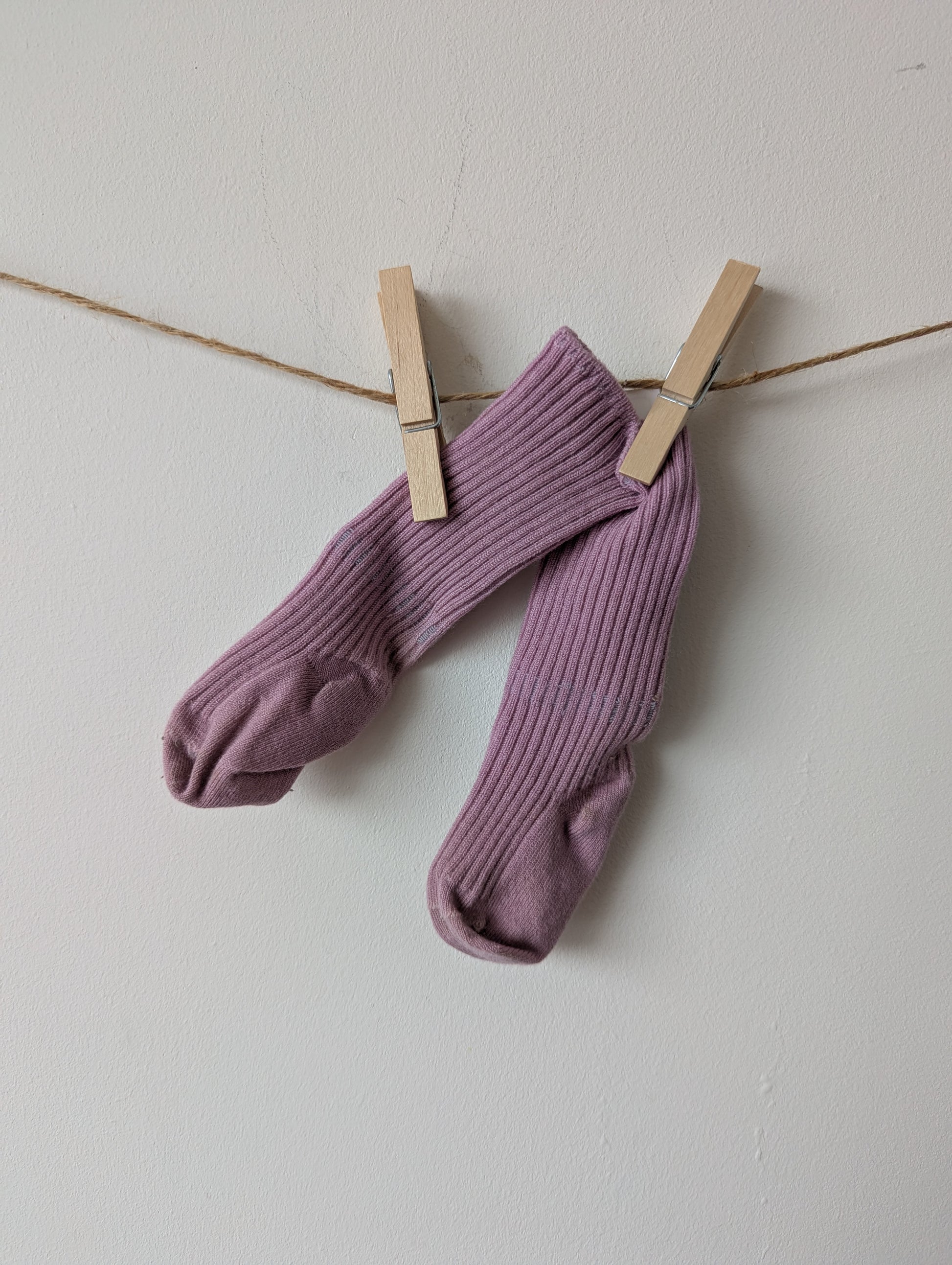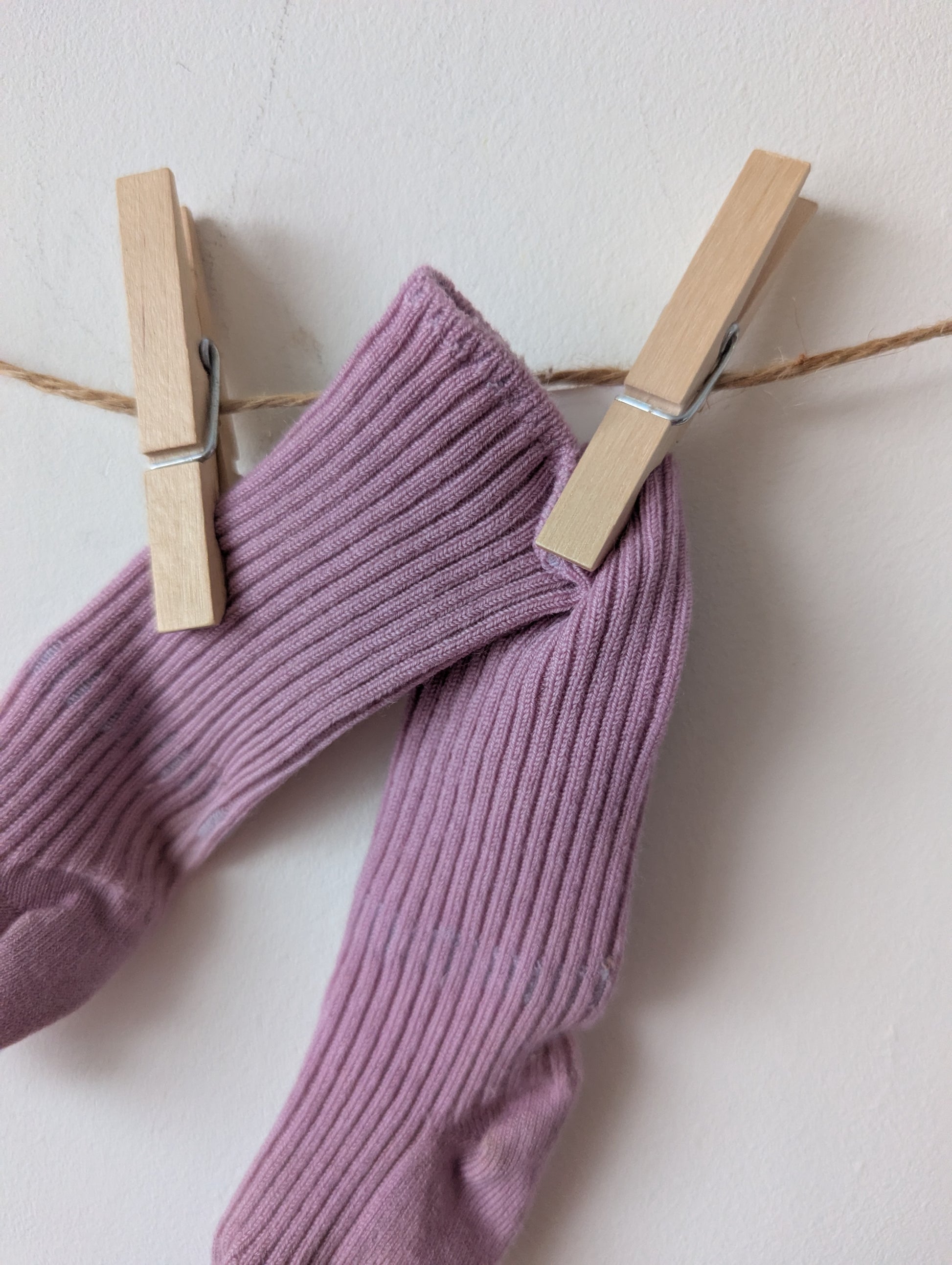 Lekkere dunne wollen sokjes in lichtroze. Je kunt zien dat ze gedragen zijn bij de hak maar kan nog prima